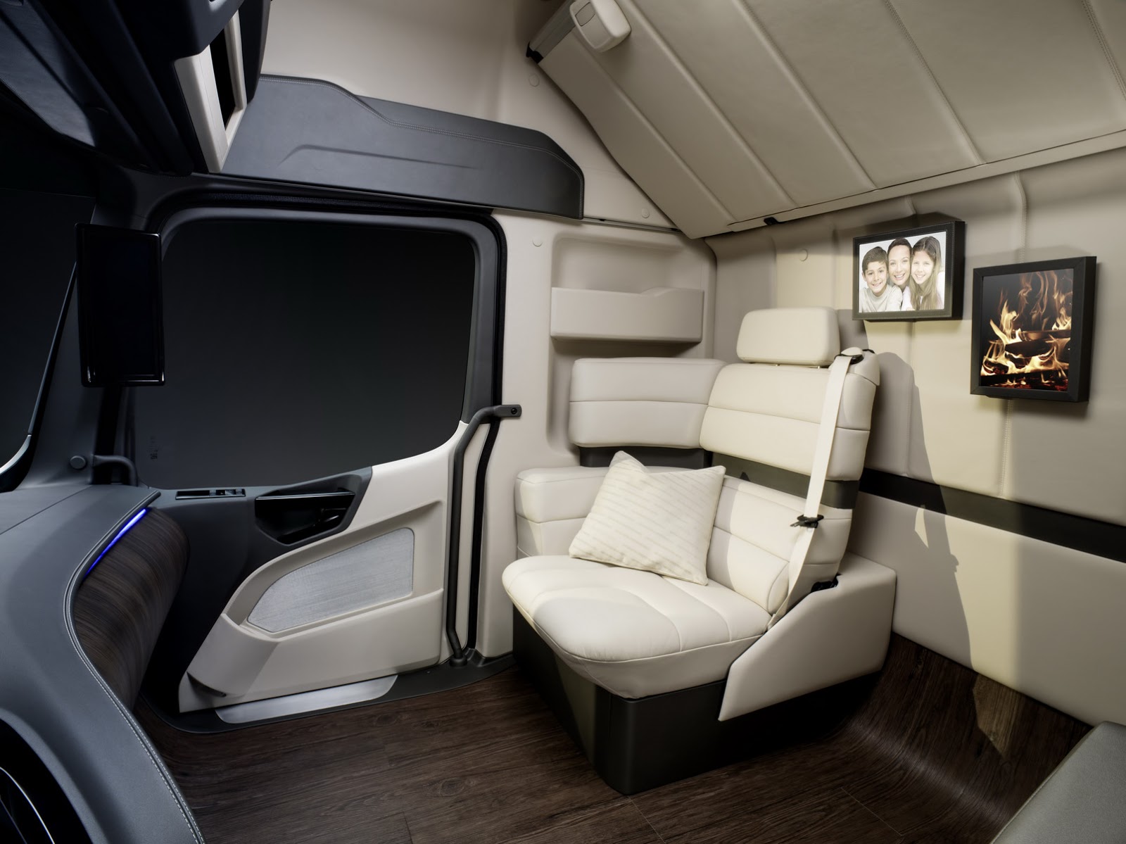 Kar se tiče udobja za voznika in ostale potnike, future truck ponuja najvišji nivo voznega udobja na čelu s “pilotskim” voznikovim sedežem, digitalnim zaslonom in merilniki ter Samsungovo tablico, ki zaseda osrednje mesto na sredinski konzoli, ki lahko služi kot pomočnik pri vožnji ali kot informacijsko zabavna konzola. Presenetijo pa tudi prečiščenost potniškega prostora, zaobljene linije, uporabljeni materiali in pa ambientalna razsvetljava skozi celotno kabino.