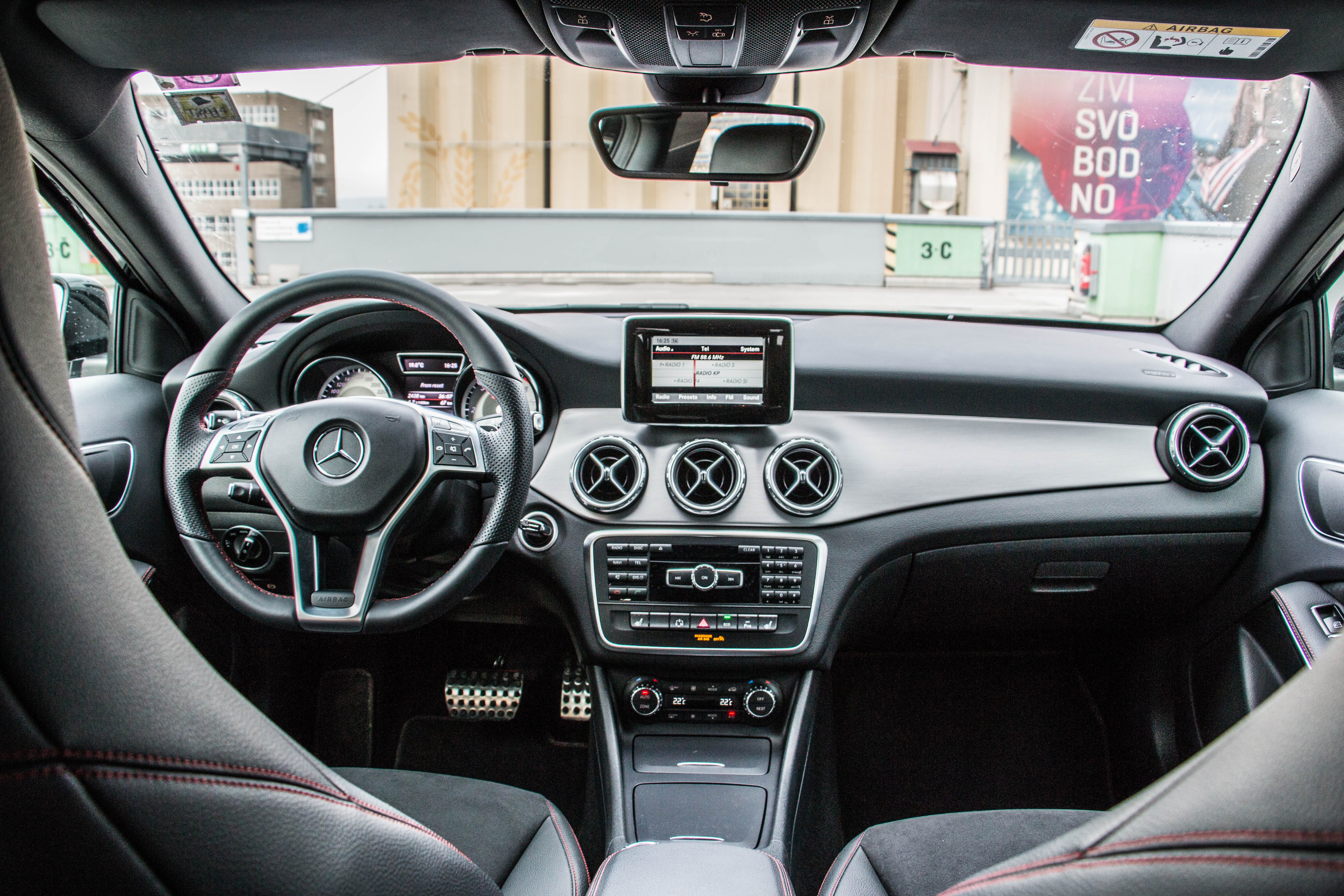 S svojima bratoma mercedesom A ja CLA si deli večino komponent v notranjosti, kar vsekakor ni slabo, saj je le ta mladostno navdihnjena in zanimiva v svoji dinamični oblikovni svobodi. Od luokka A je daljši za približno 12 senttimetriä, kar avtomatično pomeni tudi boljše občutke v notranjosti in večji volumen prtljažnega prostora, ki znaša 421 litraa, kar je skoraj 80 litraa več kot v mercedesu A.