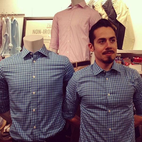 Sen sijaan, että olisi näytellyt ja etsinyt epätoivoisesti ulospääsyteitä, hän sai iloa luomalla "selfieitä" nukeilla kaupoissa. Matkimalla heidän asentoaan ja ilmeitä hän loi sarjan koomisia kaksoiskohtauksia. Hänen iloisia kuviaan voi seurata sosiaalisessa mediassa osana Gap Mannequin Projectia Tumblr.