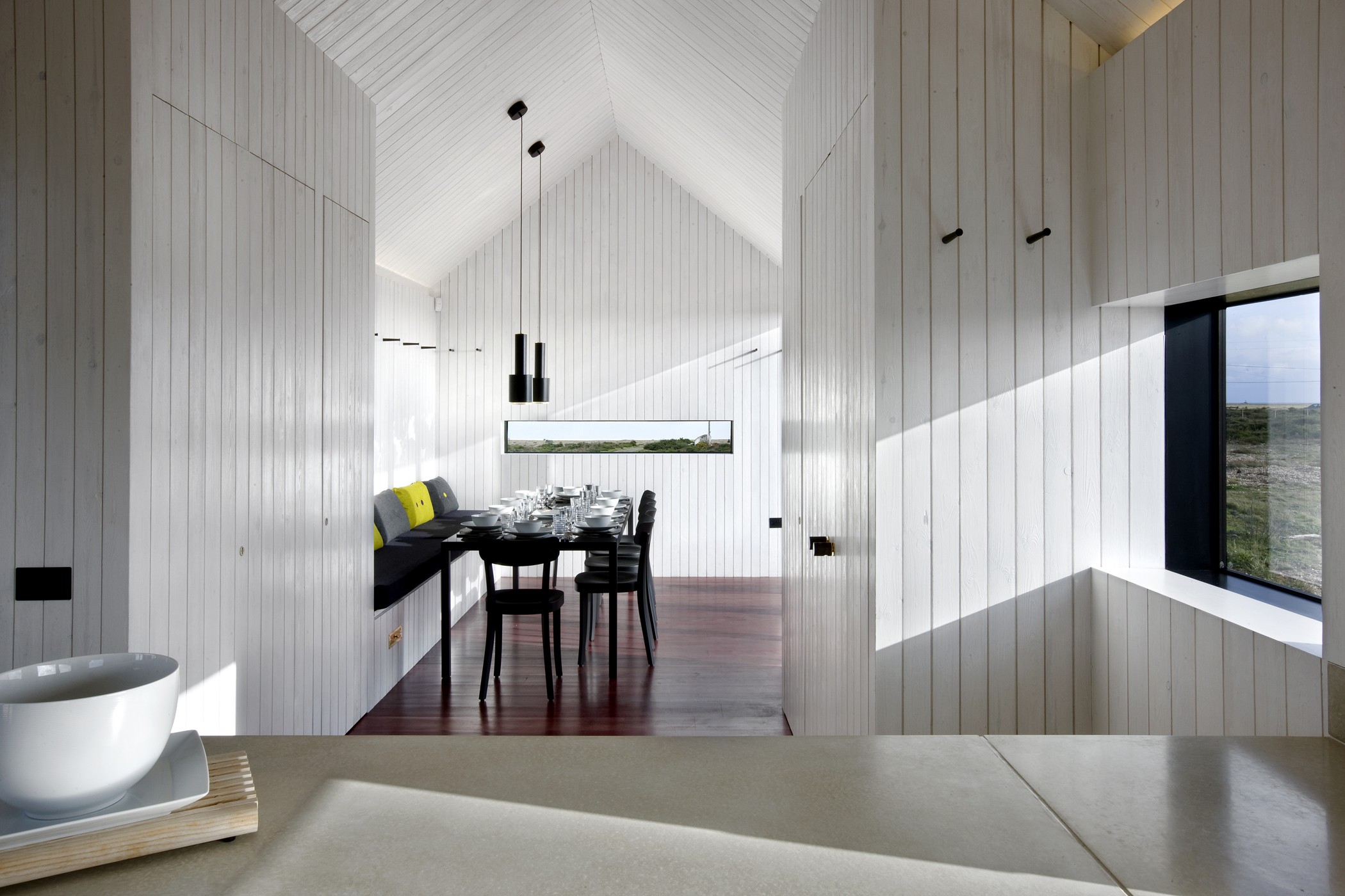 Young Scottish Bureau NORD (Pohjoinen tutkimus- ja suunnittelutoimisto) vastasi arkkitehtonisesti luonnonympäristöön, jossa se seisoo moderni viikonloppu – Shingle talo. Kahteen yksinkertaiseen tummaan rakennukseen, joihin liittyy kontrastivalkoinen pienempi rakennus, mahtuu 8 henkilöä, joissa on ruokailutila ja keittiö, ylellinen kylpyhuone sekä oleskelu- ja makuutila. Jos tämän ulkopuolelta modernista viikonlopusta tumma, sisäpuoli on peitetty valkoisella. Sisustus on lämmin, orgaaninen, kirkas, kontrastina ulkoiselle mustuudelle. Jokainen yksityiskohta päällä moderni viikonloppu on harkiten valittu olemaan sopusoinnussa kokonaisuuden kanssa. Vuokrattavissa oleva rakennus sai RIBA-palkinnon (The Royal Institute of British Architects) vuonna 2011.