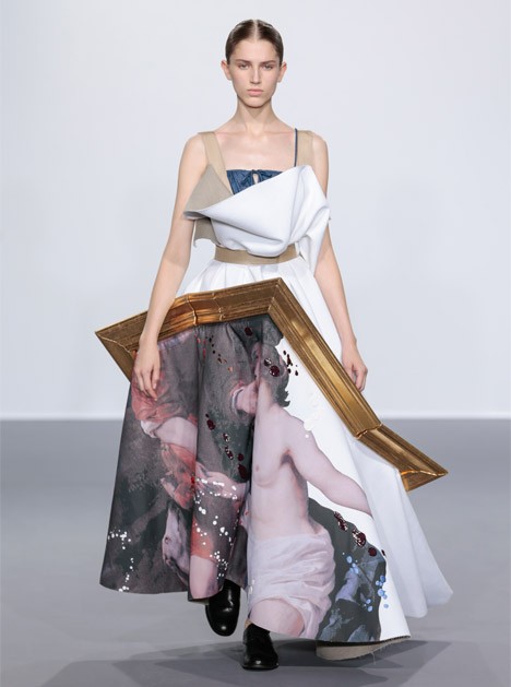Visoka moda je vsekakor polje, kjer si kreativnost lahko da duška, sploh če je govora o znamki Viktor & Rolf. Ta je pred kratkim na tednu visoke mode za jesen in zimo 2015 v Parizu v muzeju Palais de Tokyo predstavila kolekcijo nosljive umetnosti The Wearable Art. Gre za oblačila narejena iz okvirjev za sliko, in ja, ko obleke ne nosite, jo lahko preprosto obesite na steno, kot sliko, in ne na obešalnik in pospravite v omaro. Bizarno?
