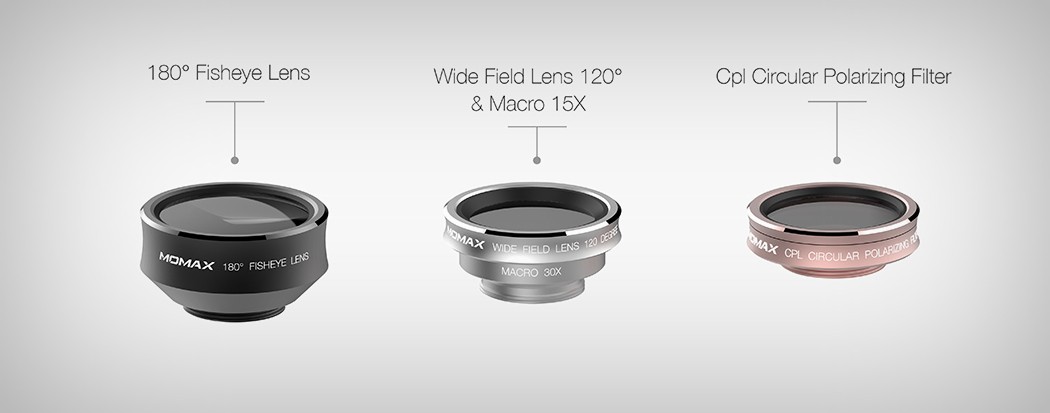 Momax-paketissa saat mm kalan silmä (kalansilmälinssi), laajakulmaobjektiivi, polarisoivalla suodattimella varustettu linssi ja makro objektiivi. Linssien vaihtaminen on yhtä yksinkertaista kuin pelimerkkien lisääminen neljässä rivissä -pelissä pidikkeen kokoonpano, joka tarttuu mihin tahansa puhelimeen eikä jätä jälkiä (lue: naarmua) taakseen.