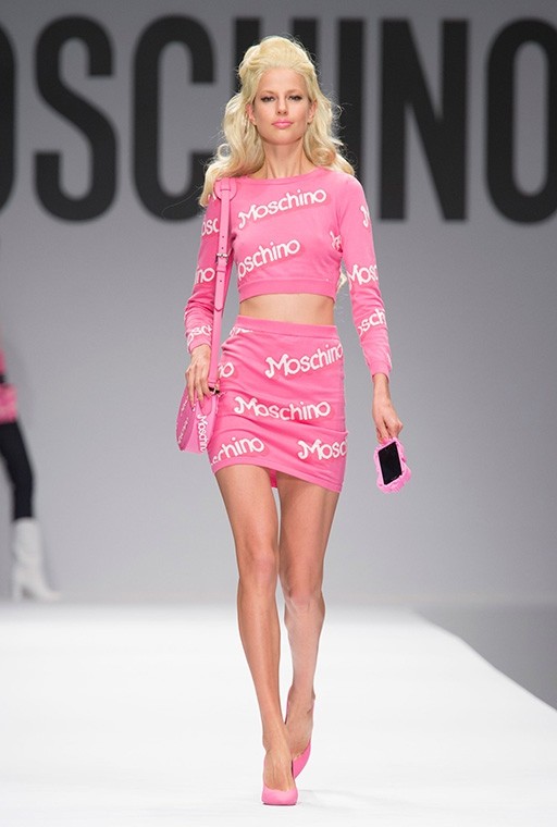 Päällä Milanon muotiviikot he olivat päällä Moschinot Tytöt kävelivät muotinäytöksen catwalkilla Barbie ihmisen koossa. Mallit, jotka käyttivät pääasiassa vaaleanpunaisia muotiluomuksia, yllättivät vahvalla meikillä, platinanvärisillä kiharoilla ja autenttisella esiintymisellä klassisessa Barbie-tyylissä. Toinen heistä nousi lavalle rullaluisttimet jalassa, kun taas toinen toi mukanaan vaaleanpunaisen muovisen matkalaukun.