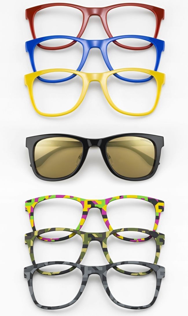 Jos olemme sitä tyyppiä, joka ei osaa päättää minkä värisen kehyksen hänen aurinkolasiensa tulisi olla, nämä Carrera-aurinkolasit ovat meille. Kevytmetallista valmistettuja pyöreitä ja neliömäisiä kehyksiä on saatavilla, joihin voimme valinnaisesti lisätä erivärisiä ja kuviollisia muovisia etukehyksiä.
