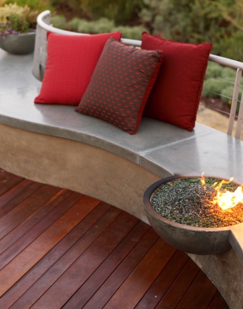 Danes so moderni predvsem naslednji dizajni ognjišč:”ogenj in led”, ”ogenj in voda” ter ”ogenj in kamen”. Pri prvem se koščki stekla uporabijo kot alternativa kamenčkom. Steklo je namreč odporno na vročino in doda zanimiv, ”ledeni” videz ognjišču. Druga popularna kombinacija je z vodo, ki ognjišče obkroža in ponuja romantičen odsev plamena. Za zemeljski in zen videz ognjišču pa ga posujte z manjšimi kamni. Kamen bo absorbiral vročino in jo širil, ko bo ogenj ugasnil. V nadaljevanju si poglejte nekaj najbolj vročih idej.
