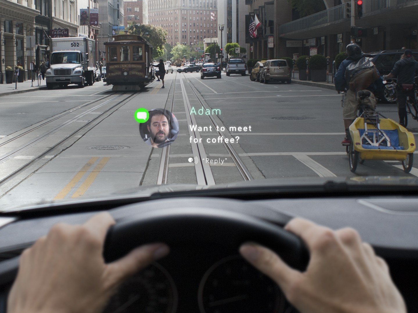 Navdyja ‘uboga’ tako na vaš ääni, kiitokset IR kameri pa tudi na vašo mimiko. Če npr. podrsate na levo boste odgovorili na klic, če podrsate na desno pa boste ugasnili opozorilo/obvestilo. Medtem vožnjo boste med drugim lahko z glasom ‘pisali’ sporočila in tvitali, prav tako boste na glasovni ukaz lahko klicali, iskali in predvajali musiikkia, uporabljali sovellukset iz telefona, podobno kot Siri pa vam bo tudi Navdy bral sporočila in usmerjal kot Garmin. To in še mnogo več- brez enega samega dotika telefona.