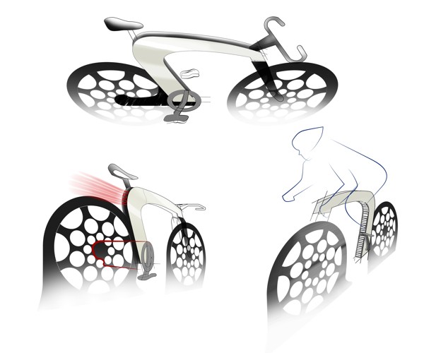 Modernisti muotoiltu nCycle-taittopyörä, jolle on ominaista tinkimätön toiminnallisuus, toimii tulevaisuuden kulkuvälineenä.