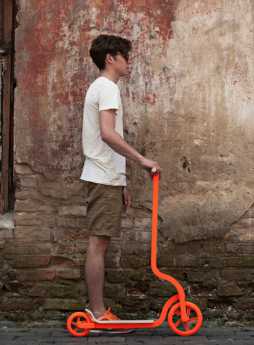 Neonvärinen se pyörii yhdellä jalan painalluksella katkeaa puoliksi ja ergonomisten linjojensa ansiosta sitä voidaan kantaa olkapäällä. Ignas on varma, että matkustaminen paikasta toiseen sen kanssa on todellinen pieni seikkailu, sillä sen rohkean ulkonäön lisäksi se on myös koristeltu erikoispyörät, jonka harteille lankeaa koko tärinän ja iskun taakka, joten voit nauttia ympäristön vaikutuksista etkä jää paitsi jalkakäytävien kuopista ja kivistä. Mutta kun siirryt kävelyyn, voit yksinkertaisesti heittää sen hartioillesi ja vapauttaa kätesi kokonaan sen kantamisen taakasta.