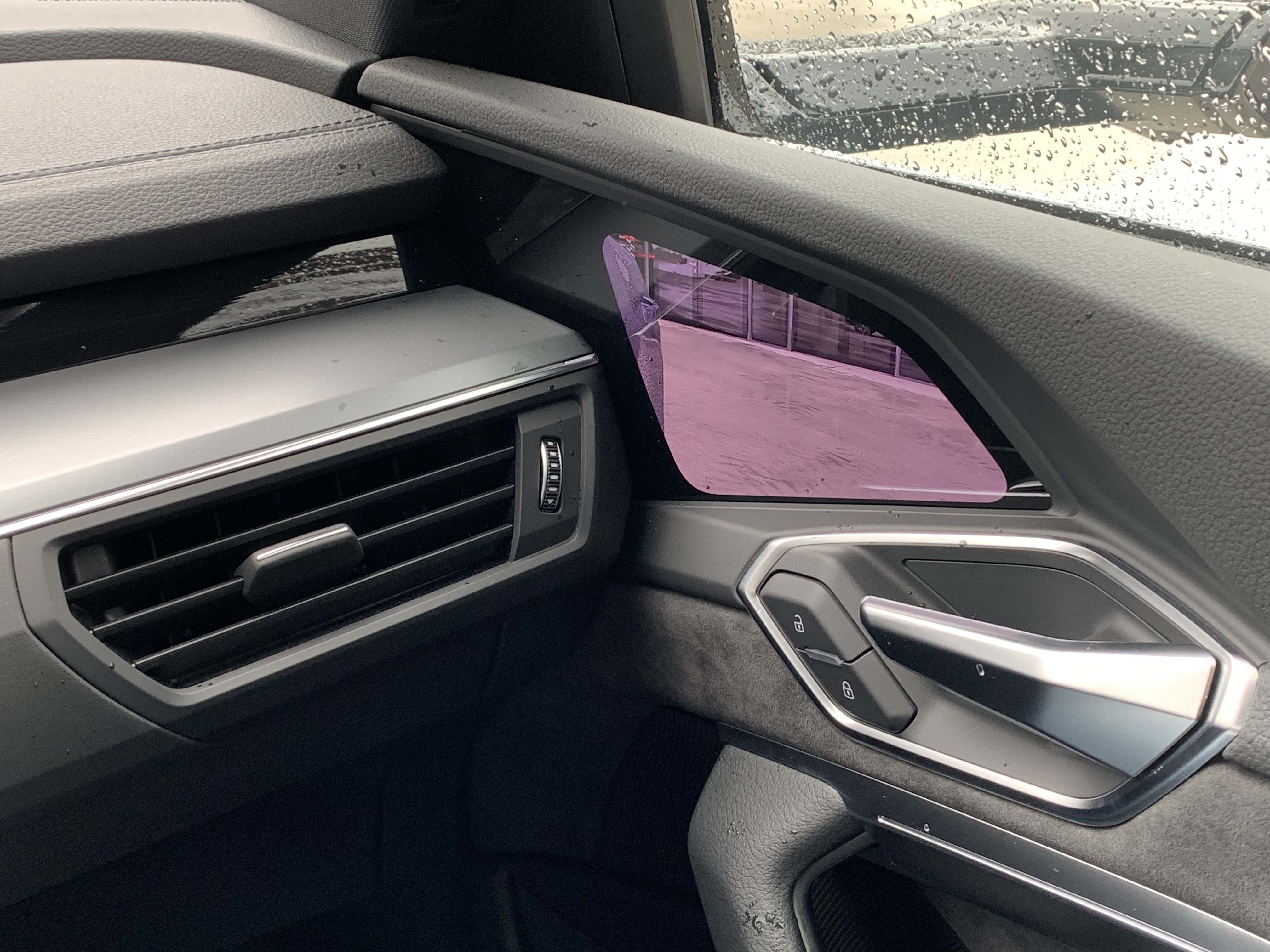 Virtuaaliset ulkopeilit he ovat uutuus, jota emme ole vielä käytännössä nähneet. Se ei ole vain muotia, he ovat sellaisia syystä aerodynamiikka. Niiden pintaa verrataan klassisiin peileihin 15 cm² pienempi, mikä tarkoittaa niin paljon pienempää ilmanvastusta, että voimme laajentaa e-tronin toimintasädettä lisää 15 kilometriä. Kamerat välittävät kuvan kahdelle 7 tuuman OLED-näyttö, jotka tukevat automaattista kirkkauden säätöä ja läheisyyttä ympäristöön.