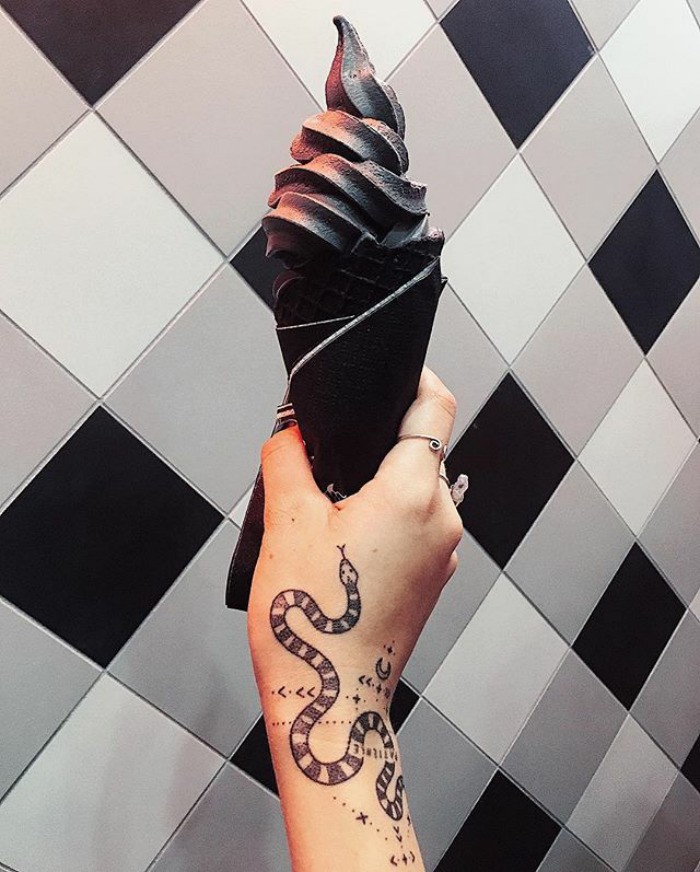 Mutta se ei ole ainoa jäätelö, joka sopii "pimeälle sielullesi" - myöskään New Yorkissa (Morgenstern Finest Ice Cream) tarjoillaan mustavalkoinen jäätelö, jossa ihmiset seisoivat jonoissa jo viime vuonna.