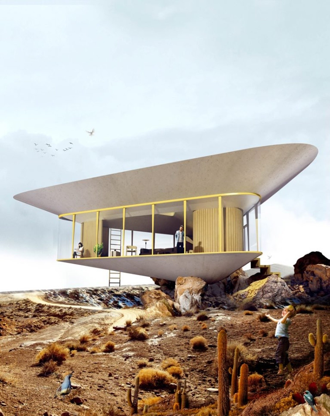 Hišo trikotne oblike so si ustvarjalci zamislili na obalnem območju z visokimi temperaturami in dih jemajočim razgledom. Razdeljena je na dve glavni enoti: bivalni prostor ja katto. Notranjost zajema tri manjše prostore – kylpyhuone, keittiö ja makuuhuone, ki jih je po želji mogoče obdati z ovalnimi stenami tai ustvariti odprt prostor.