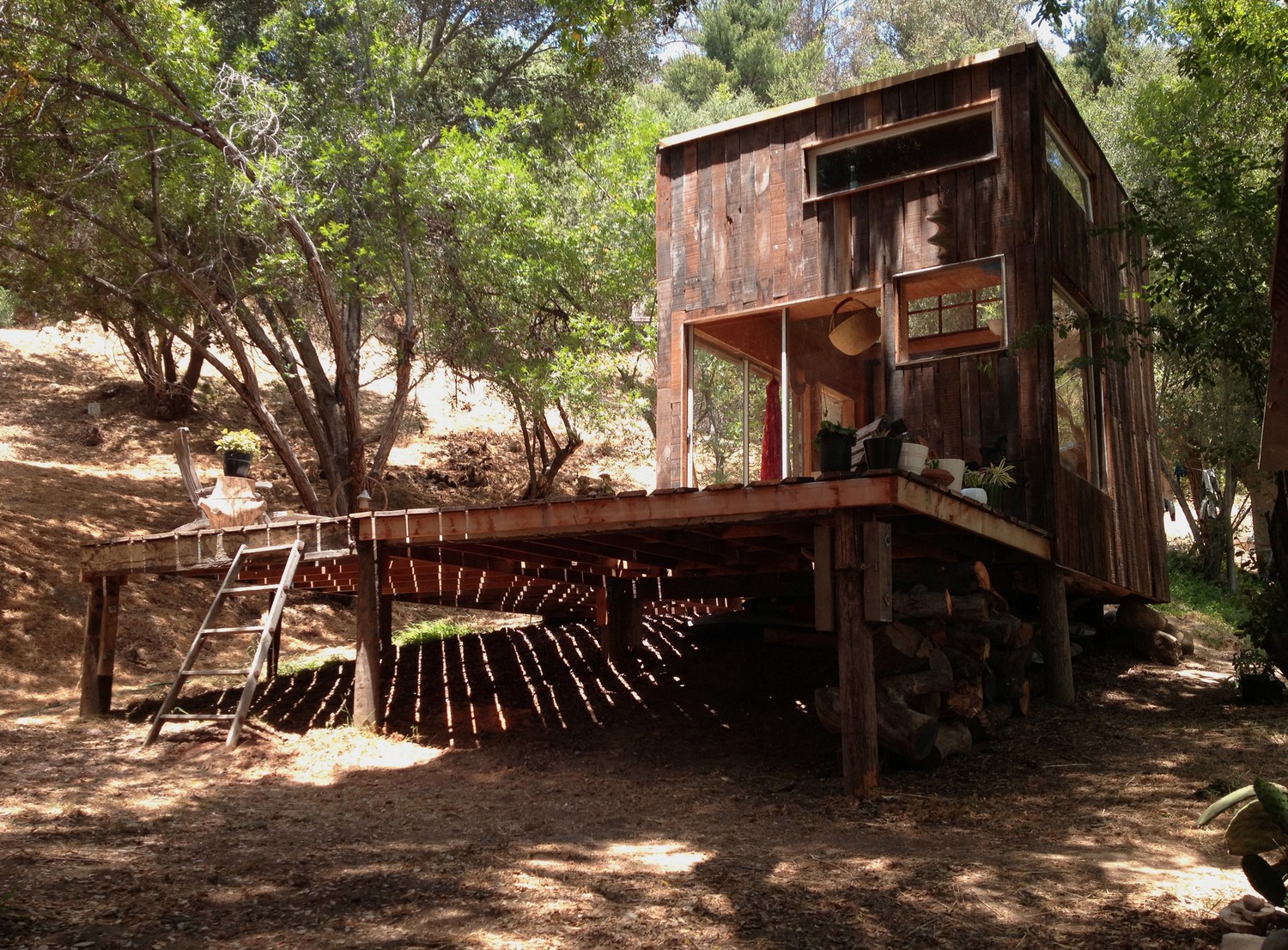 Pienestä koostaan huolimatta puinen loma-asunto Kaliforniassa tarjoaa upeat olosuhteet luonnossa lomailuun.