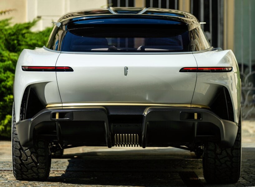 Kun katsomme ajoneuvon takaosaaPURE Vision', ihastumme välittömästi erittäin ohuisiin vaakasuuntaisiin LED-valoihin, jotka korostavat ajoneuvon lihaksikkaita linjoja. Tämä tyypillinen urheilullinen muotoilu heijastuu myös ajoneuvon pystysuoriin sivuihin, jotka nousevat ja taipuvat tasaisesti. Tätä hienostunutta ulkoasua, joka on jaettu legendaarisen Battista hyper GT:n kanssa, korostaa ainutlaatuinen "biscotto" katto, joka luo erottuvan ilmeen myös ylhäältä katsottuna. Alla olevan puskurin paljas hiilikuitu heijastaa etuosan muotoa ja luo kontrastin yläpään puhtaiden pintojen ja veistoksellisten muotojen kanssa.