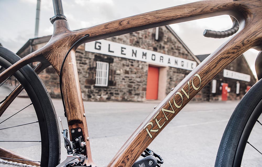 amerikkalainen pyöräilyyritys Remontti erikoistunut valmistukseen puiset polkupyörän rungot. Puun rakenteen ansiosta Renovo voi tuottaa onttoja puukehyksiä, jotka ovat verrattavissa hiilikuidusta valmistettuihin. Puulla on myös kevyt paino, samanlainen lujuus ja se vaimentaa tärinää paremmin. He saivat inspiraationsa perinteisestä viskin tuotannosta ja kaareva tynnyrin muotojossa viskiä säilytetään. Glenmorangie pidetään yhtenä arvostetuimmista valmistajista Skotlantilainen viski. Yhteistyö vaikuttaa erittäin merkitykselliseltä, sillä kaksi eri toimialojen suurta nimeä on yhdistänyt voimansa. Tällä tavoin vanha tynnyri saa uuden merkityksen ja polkupyöräyritykset saavat ainutlaatuista materiaalia mestariteoksiinsa.