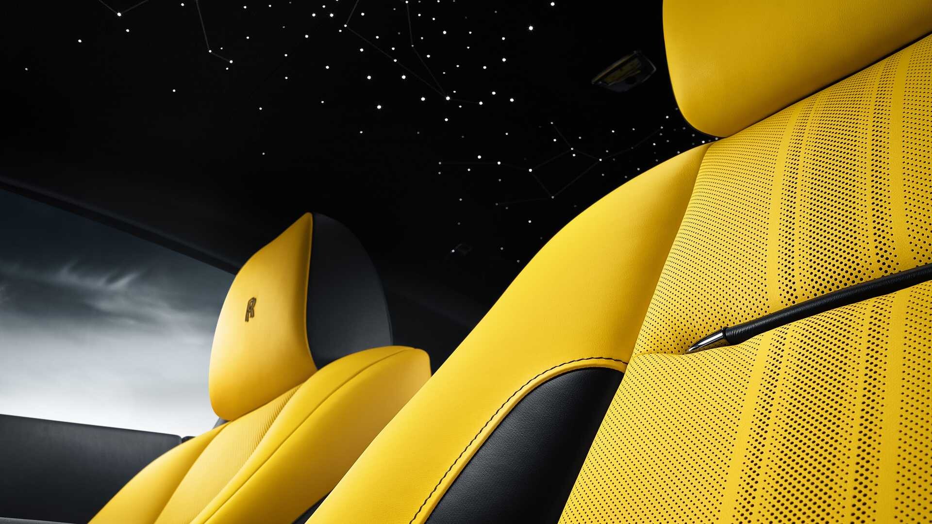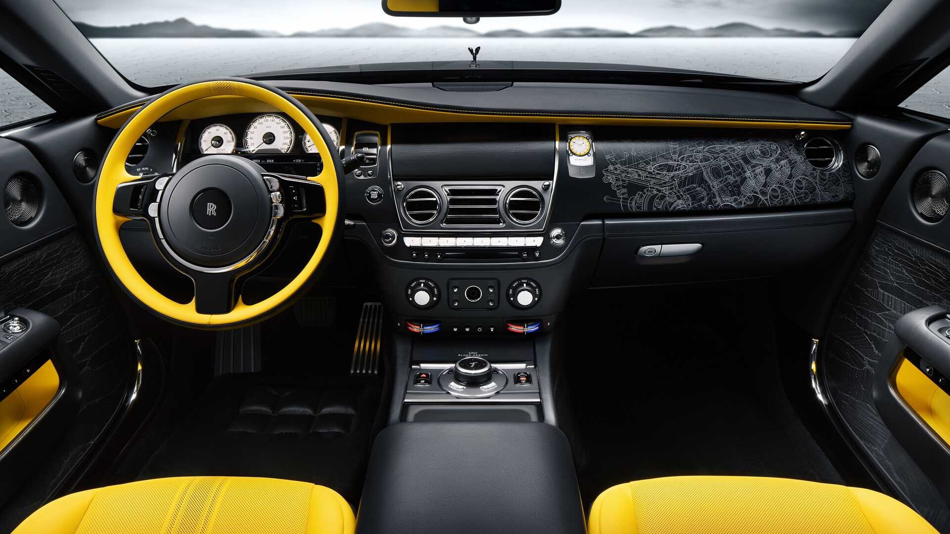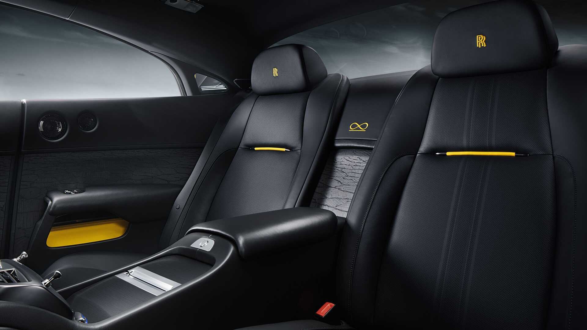 Rolls-Royce Black Badge Wraith Black Arrow siinä on kaltevuusvärinen ulkopinta, joka vaihtelee etuosan hopeasta mustaan takana, ja kaikkialla on keltaisia aksentteja. Celebration Silver- ja Black Diamond -väreissä on lasinen pintamaali, joka lisää visuaalista vaikutusta. Värit ja levitystekniikat olivat täydellisiä 18 kuukautta, mikä tekee siitä yhden Rolls-Roycen koskaan luomista monimutkaisimmista väreistä.