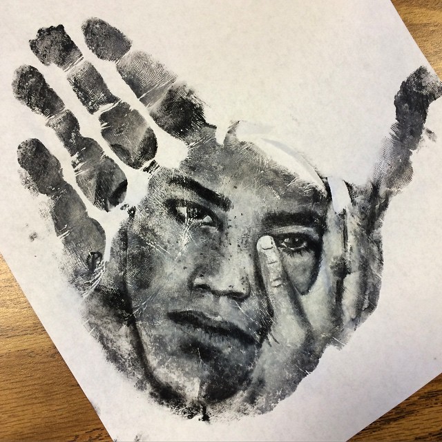 A zakaj bi takšne umetnine risal na roko, samo za to, da bi jih potem moral sprati? No, Powell vendarle poskrbi, da njegovo delo ni zaman ali le začasno, saj, ko je barva še sveža (kar kaže na to, da mora biti pri svojem delu hiter), potret kot štampiljko odtisne na list papirja, njegovi prstni odtisi pa nas spominjajo, kako je slika v resnici nastala. Impresivno!
