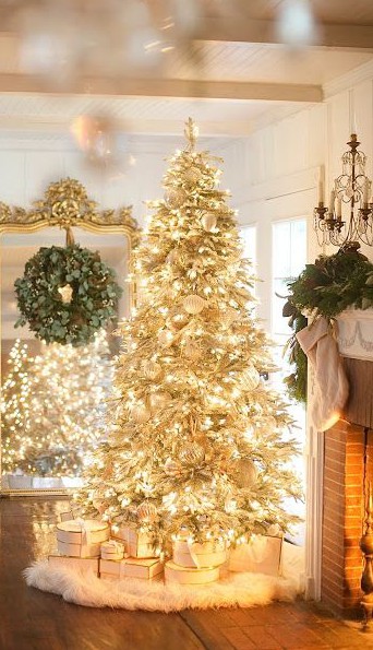Jos olet Oletko kyllästynyt vihreään joulukuuseen ja haluaisit tehdä muutoksen tämän vuoden koristeisiin?, on aika harkita oman Koti oli koristeltu samppanjanvärisellä joulukuusella..
