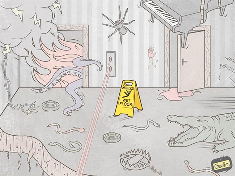 Življenje je zabavno, pa tudi kruto. In ruski ilustrator Anton Gudim se tega še predobro zaveda. Kar nekaj njegovih del moramo pogledati dvakrat, da razumemo njihov pomen, In nič kaj drugače ni s temi satiričnimi ilustracijami, ki na komičen način obarvajo naše vsakodnevno življenje in življenje na družbenih omrežjih.
