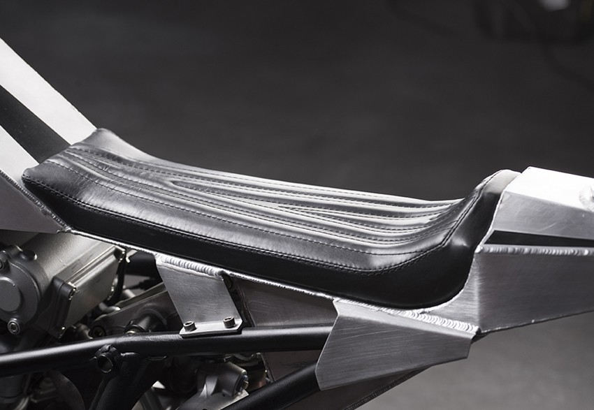 Polttoainesäiliön ja pyörän takaosan terävät reunat ja näkyvät ja keskeneräiset hitsaukset täydentävät pyörän näkyvää runkoa hienosti, ja kokonaisuus on todellinen esimerkki teollisesta muotoilusta. Anvil Warthod Ducati Monsterin ajo-ominaisuuksista ei tarvitse tuhlata sanoja, koska se on edelleen Ducati, vain ulkonäöltään muuttuneella tavalla.