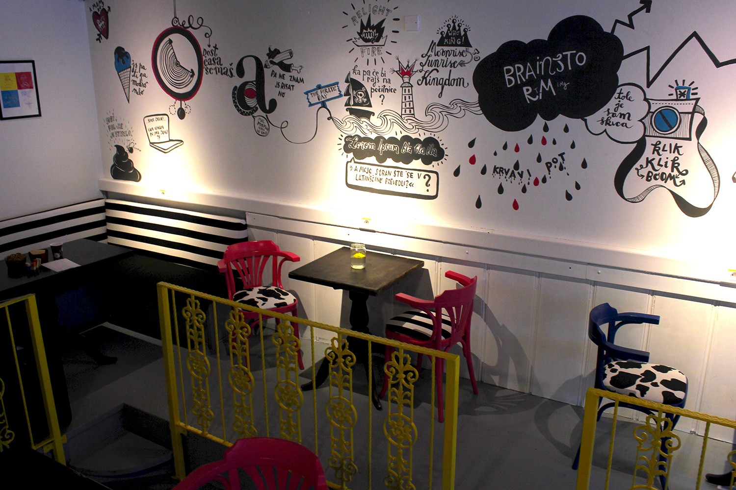 Velenjen punainen sali avasi hiljattain ensimmäisenä ovensa Aloita työskentelytilat. Niissä on luova sisustus, jonka rikkaan Velenjen lyömäsoittimen perinteen mukaisesti nuoret muuttivat sen entisestä baarista itse työtiloiksi. Suunnitelma SAŠA-hautomon toimitettujen ja varustamiseen auttavien tilojen peruskorjauksesta on arkkitehdin työtä Nina Steiner. Tilaa virkistettiin kirkkailla väreillä ja värikkäillä kierrätyshuonekaluilla, jotka Velenje Reuse Center lahjoitti. Myös kuvittajan ja muotoilijan seinämaalaus lisää sisustukseen eloisuutta Anje Polh.