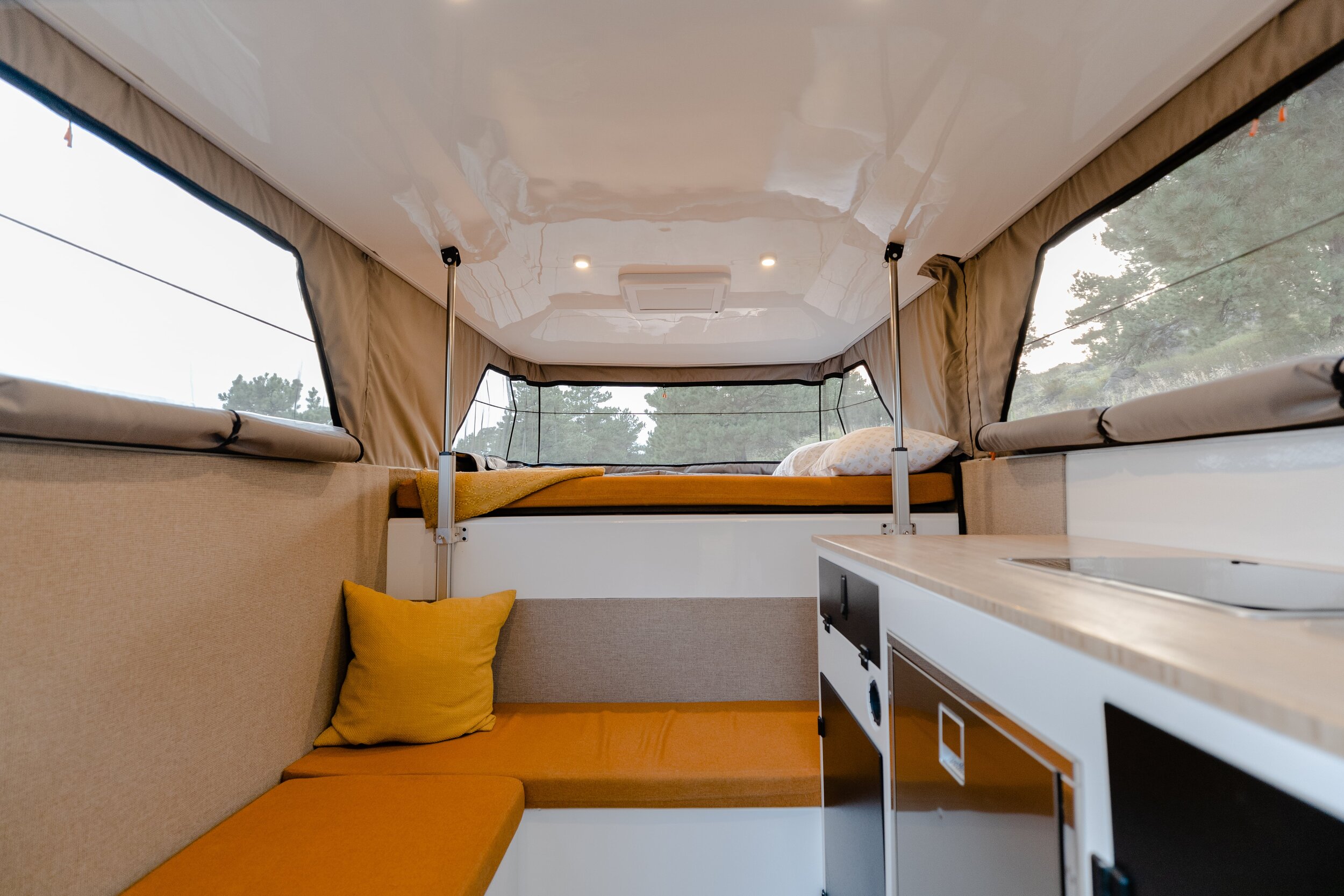 Supertramp leiriläiset, joka on kotoisin Coloradosta, on valmistanut yhden paremmista vaihtoehdoista, jonka avulla voimme muuntaa puolikuorma-automme täysin käyttökelpoiseksi matkailuautoksi. He lähestyivät tuoteesittelyä humoristisesti, jossa sanotaan, että asuintilan pohjaratkaisu ei vaadi joogan harjoittelua ja sisustus vetoaa nuoremmille sukupolville. Flagship LT:n suuri etu on elektroninen järjestelmä, joka järjestää asuintilan napin painalluksella ja tekee kaiken tämän yksinkertaisesti 10 sekuntia.