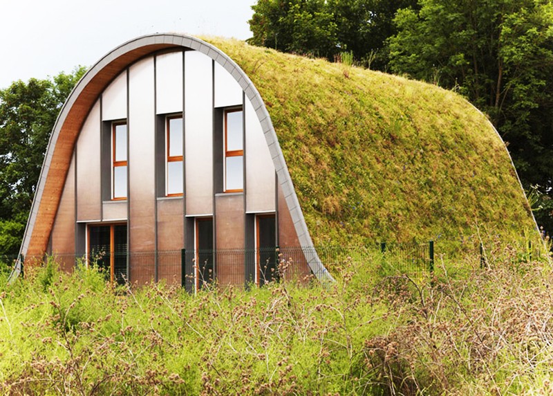 Ranskalainen arkkitehti Patrick Nadeau allekirjoitti kokeellisen projektin, joka oli ranskalaisen Reims HLM - Effort Reims -yrityksen takana ja jonka päätavoitteena oli rakentaa energiaa säästävä elinympäristö jopa 340 000 dollarin rahoituskehyksellä. Aaltopahvikattoinen nurmitalo on täydellinen esimerkki arkkitehtuurista, joka sulautuu ympäristöönsä.