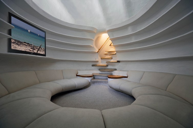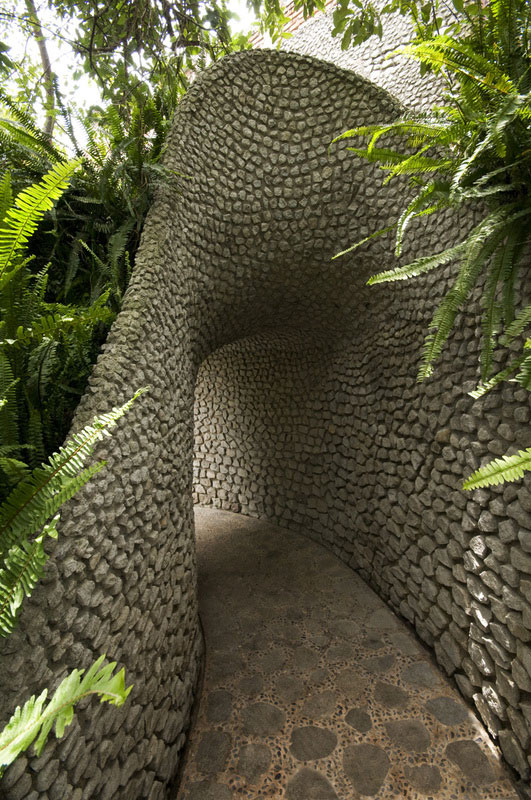 Meksikolainen arkkitehti kamppaili suunnittelun kanssa epätasainen maasto, joka mukautti talon muodon siihen. Mielenkiintoista kyllä, käärme, jolla on avoin suu Hän päätti tehdä niin, koska rinteessä olevan luolan suu muistutti häntä siitä.