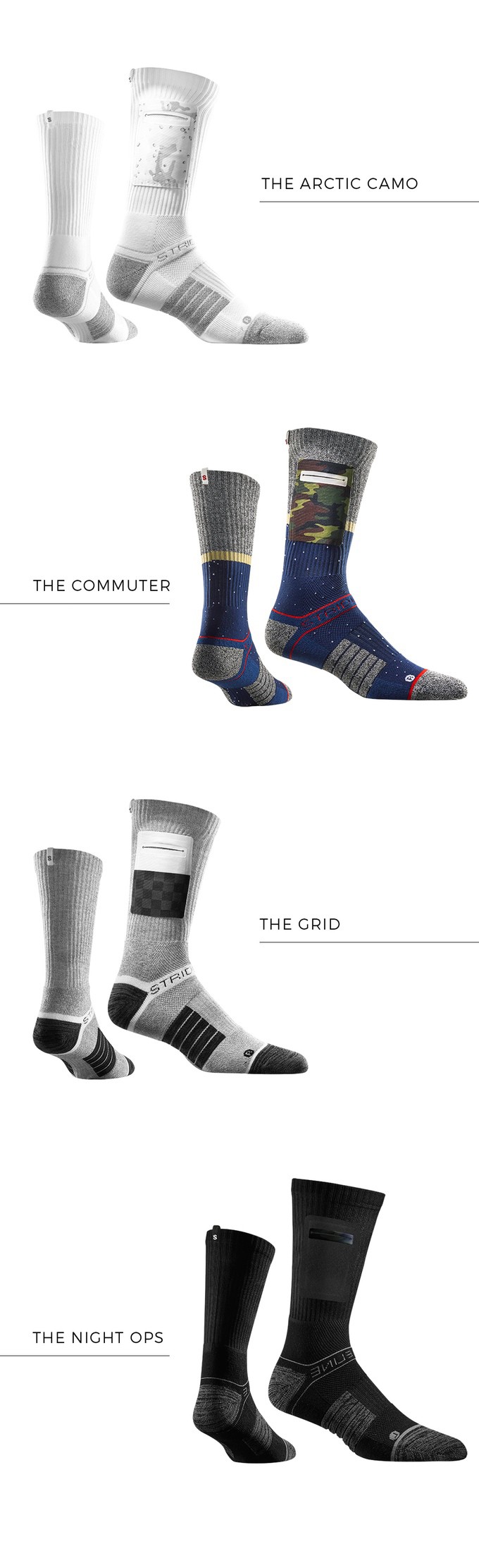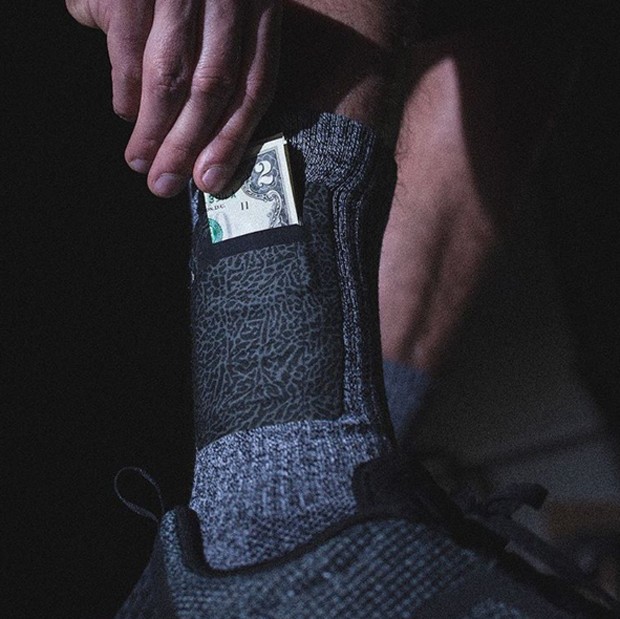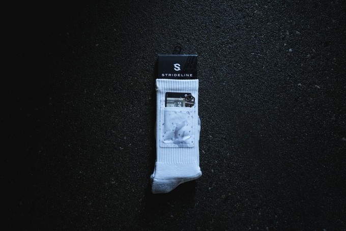 Taskusukka he ovat sukat, joissa on tasku arvoesineiden säilyttämistä vartenkuten rahaa, kortteja ja avaimia. Strideline-brändillä sen suunnitteli kolminkertainen NBA-pistemestari, NBA-koripalloilija Nate Robinson.