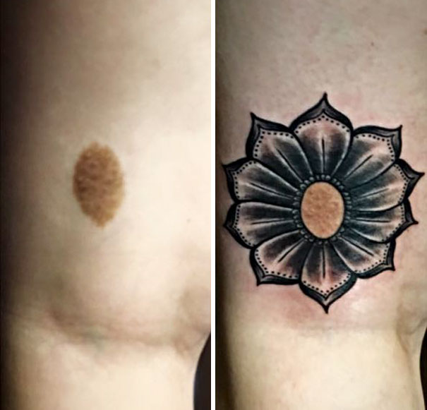 Myönnetään se, syntymämerkit monet ihmiset häpeävät, mutta nämä yksilöt ovat saaneet itseluottamuksensa takaisin tatuoinnit, jotka taitavasti peittävät pigmenttiläiskiä tai sulautuvat niihin ne täydentävät toisiaan luovasti.