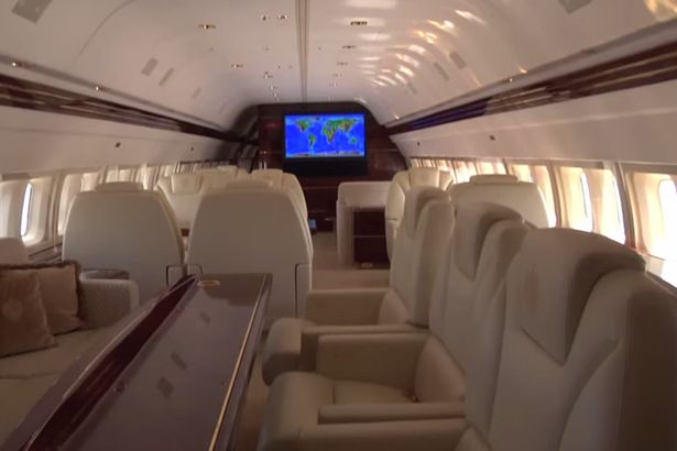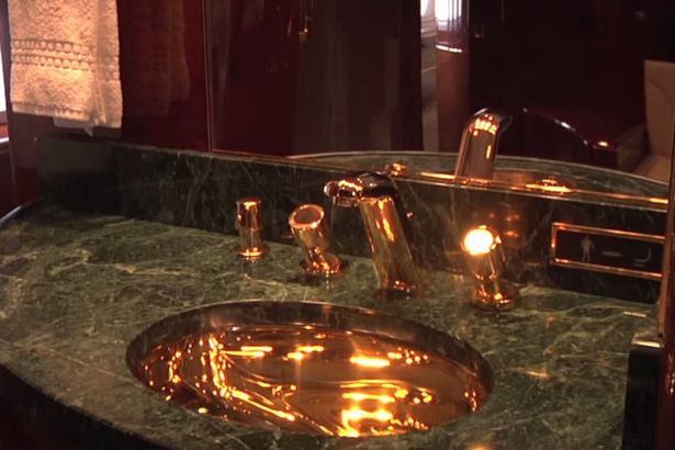Se ylpeilee elokuva, ruokailutilat, VIP-huone, kylpyhuoneet, toimistot, vierashuoneet, makuuhuoneet (jokaisessa oma kotiteatteri) ja makuuhuone, koristeltu kultaisella silkilläTrump ei todellakaan pihistellyt varusteissa. Kultaiset hanat ja pesuallas marmorisessa kylpyhuoneessa ja turvavyön soljet peitettyinä 24 karaatin kultaa, ovat vain kirsikka kakun päällä tässä palatsissa ilmassa. Että se sisältää kaiken uusin elektroniikka, sanomattakin selvää.