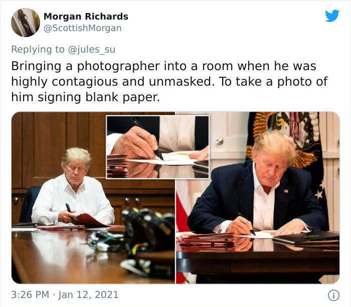 Ne glede na to, kaj se bo v teh dneh dogajalo z ameriških predsednikom Donaldom Trumpom (kakšen bo rezultat ustavne obtožbe), se njegov čas na položaju izteka. Da bi povzel njegov mandat, je Jules Suzdaltsev na Twitterju povabil ljudi, naj si vzamejo trenutek, da se spomnijo nekaterih “najbolj čudnih in neumnih” stvari, ki jih je Trump storil v svojem mandatu. Od metanja papirnatih brisač v množico po uničujočem orkanu do salutiranja severnokorejskemu general: Suzdaltsev je sestavil izpopolnjen seznam “dosežkov”.