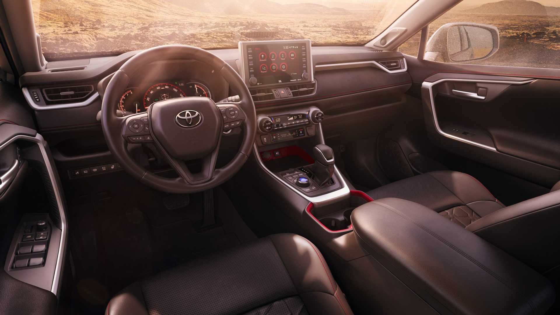 Auton ulkopuolelta Toyota RAV4 TRD huomaamme muokattu etupuskuri, joka kertoo meille hetkessä, että kyse on KOVAA versio. Sisällämme on kaikkiin vuodenaikoihin sopivat suojamatot ja verhoilu on valmistettu SoftTex, joka on kevyempi ja kestävämpi kuin nahka.