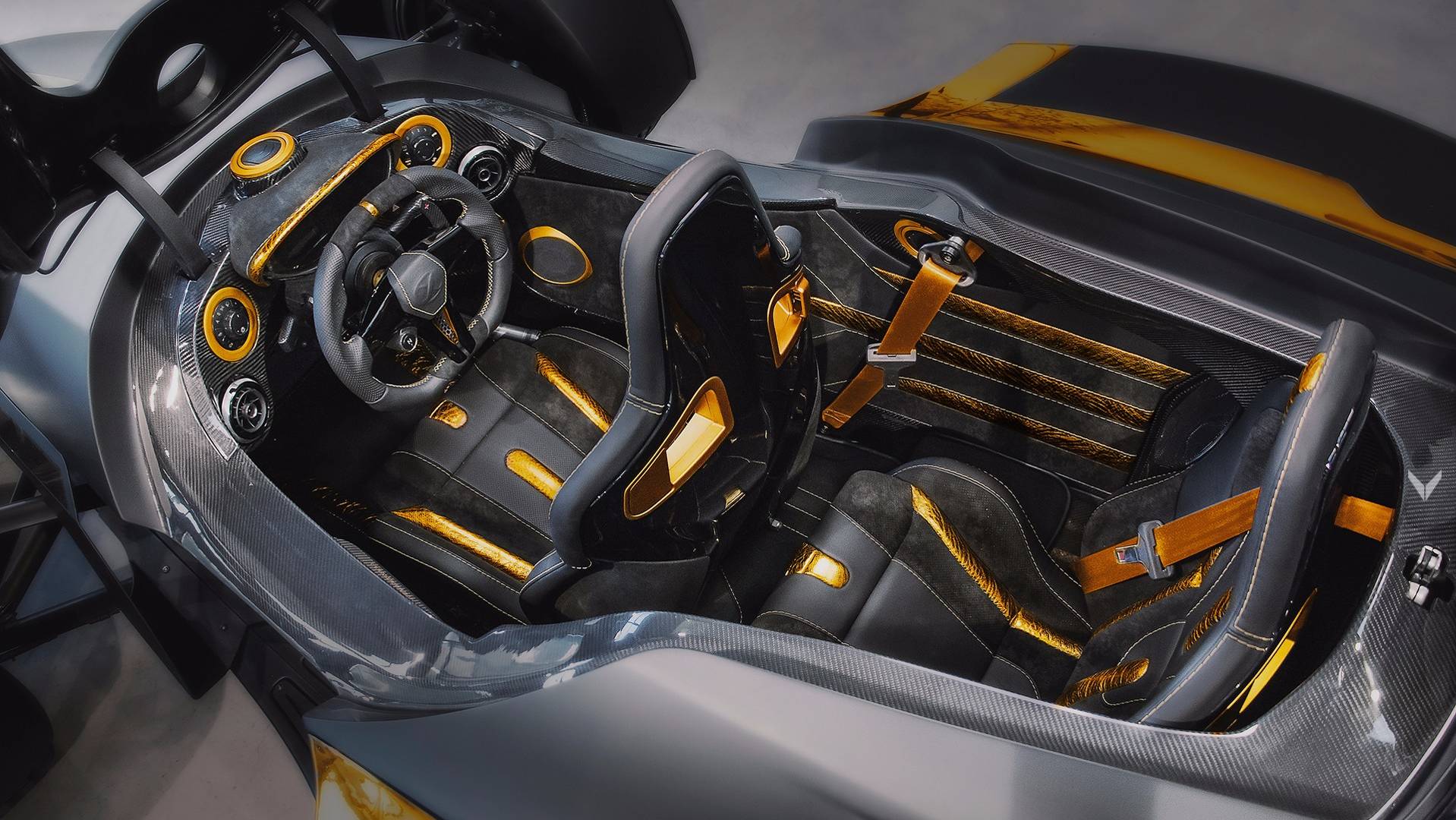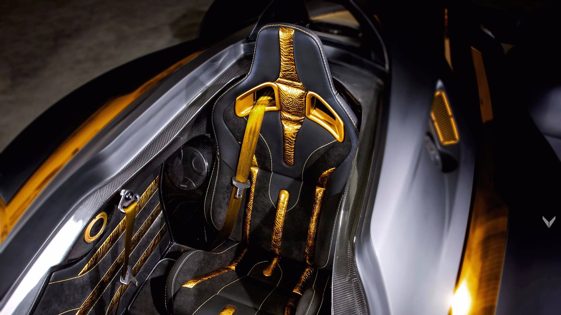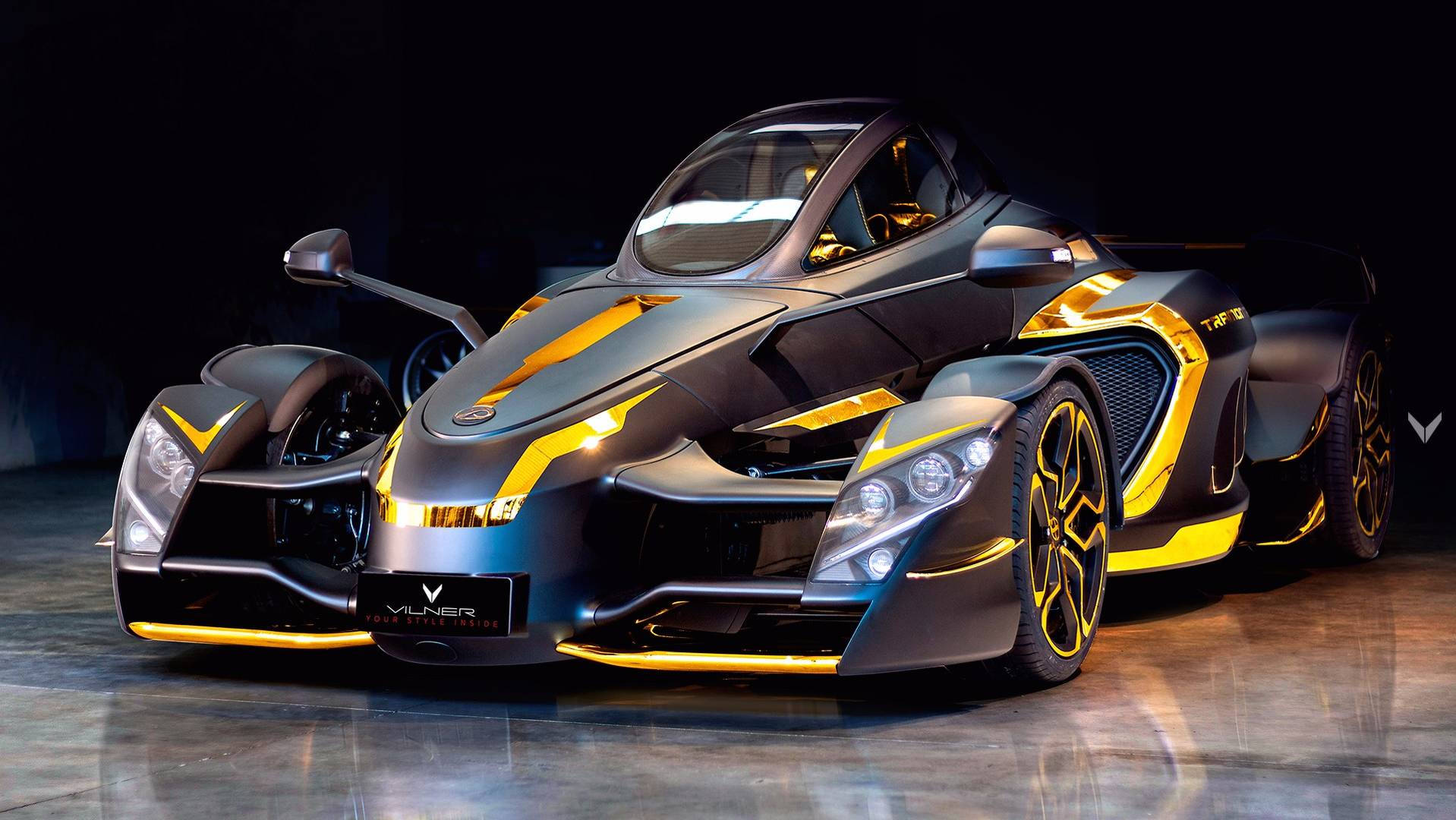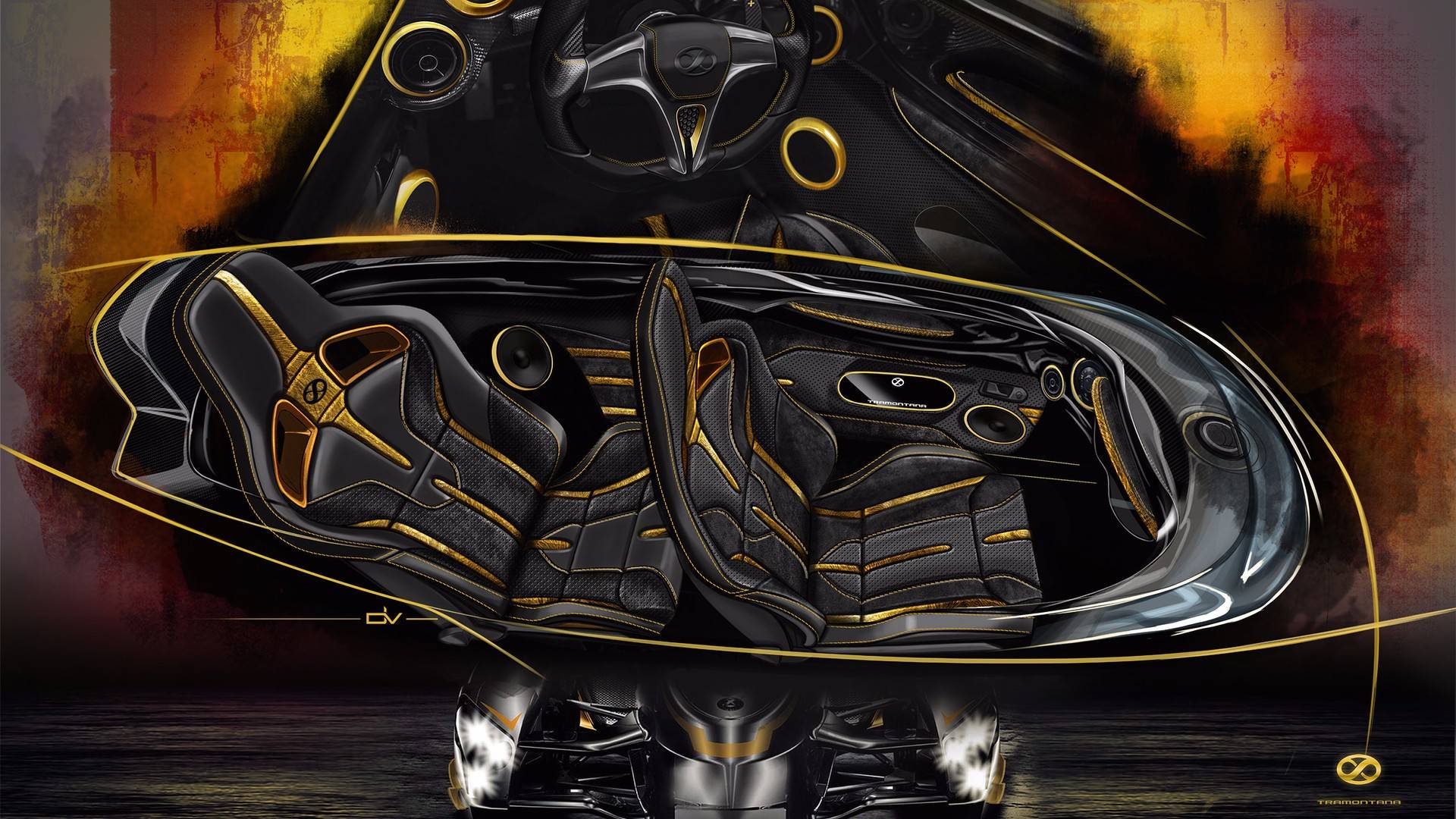 Tramontana kirjoittaja Vilner je unikaten izdelek, na katerem še kako izstopa zlato-črna barvna kombinacija. Zunanjost je odeta v mat črno barvo, ki jo kontrast delajo karoserijski deli, pobarvani v kultainen väri. A notranjost je tista, kjer ta barvna kombinacija resnično pride do izraza. Notranjost je Vilner popolnoma predelal in je odel volanski obroč, kojelauta, vratne obloge ja jopa varnostne pasove v bleščečo kultainen väri. Poleg zlata imam v notranjosti še usnje in alkantaro, ki ima zlate šive, da se ujema z ostalo zlato barvno kombinacijo.
