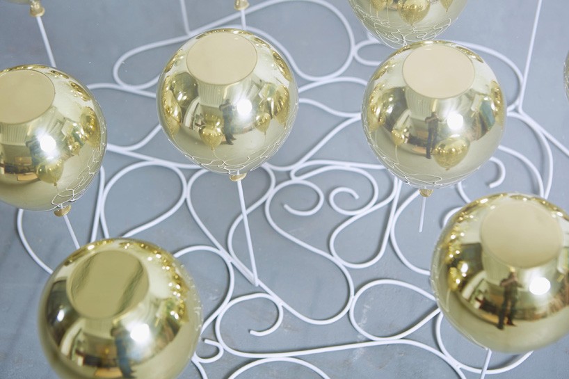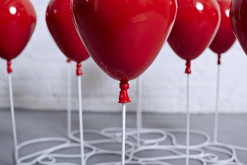 Steklena klubska mizica UP Balloon je klasične noge, kot nosilne elemente, zamenjala za rdeče, zlate in srebrne balone. A brez skrbi, ti kot rečeno niso pravi, tako, da vam doma ne bo treba hraniti še bombe s helijem, pa tudi vrvice so umetne in zvite na tleh predvsem zato, da omogočajo vakautta in pričakovano kantavuus mize.