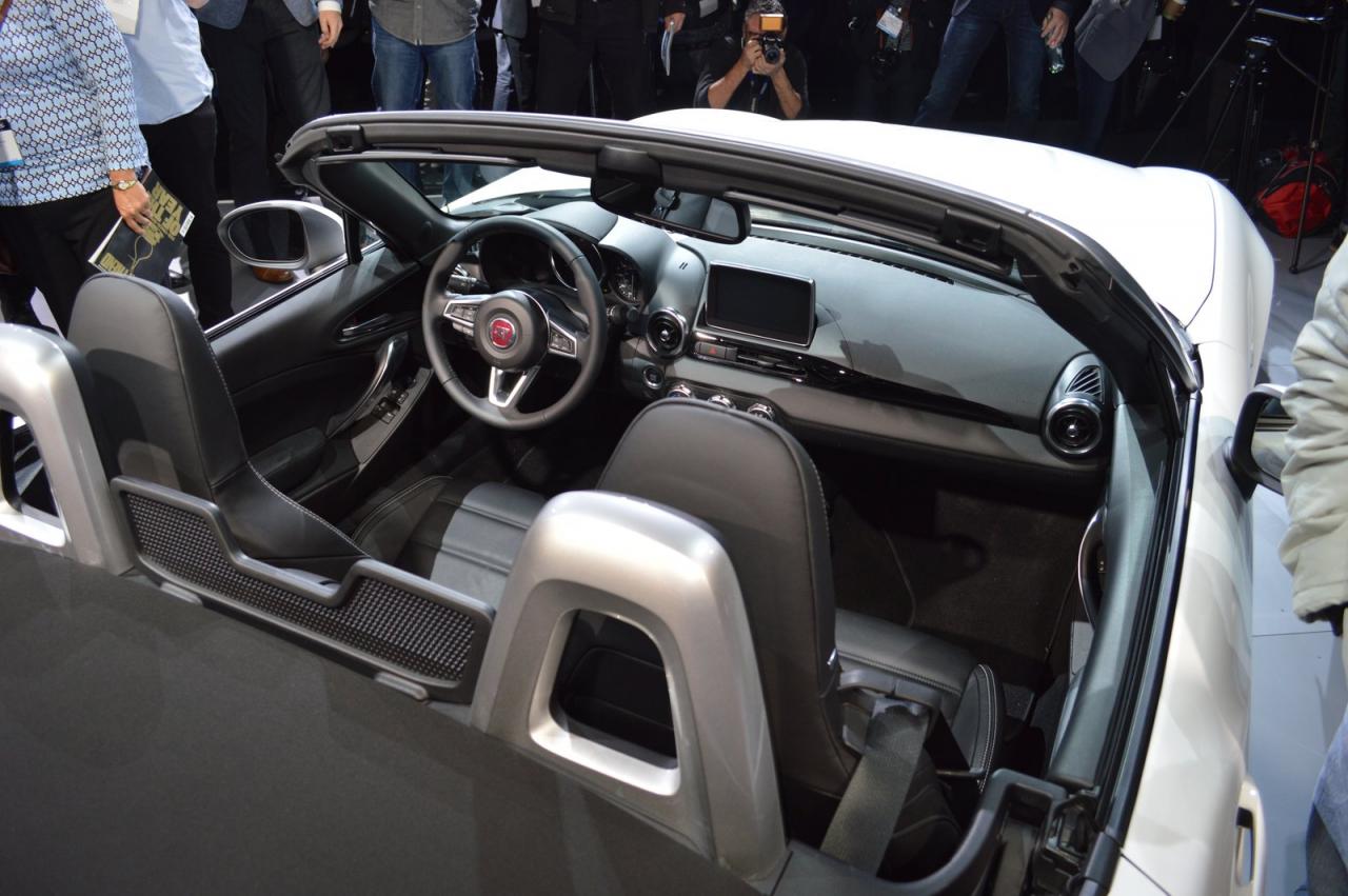 Uuden Fiat 124 Spiderin sisustus on Mazda MX-5:n ohjaamon peilikuva (kytkimet, näyttö, monitoimilaite, monitoimipainike...), mikä ei välttämättä ole haitta (epäilemme, etteikö Fiat olisi voinut kehittää sisustusta), vaan pikemminkin etu. Tällainen askeettinen mökki nimittäin se mahdollistaa maksimaalisen ajonautinnon tarjoamalla vain välttämättömät ominaisuudet ilman tarpeettomia häiriötekijöitä. Koska se on käytännössä kopio, ei ole yllättävää, että uusi Fiat 124 Spider valmistetaan Japanissa, Mazdan Hiroshiman tehtaalla. Vaikka siinä lukee "Made in Japan", Fiat takaa, että se huokuu aitoa... Italialainen viehätysLöydämme sen näyttelytiloista kesä 2016, ja ensimmäiset 124 kappaletta kantavat etikettiä Ensimmäinen luksusversio, ainutlaatuiset levyt, joissa on numero ja erityinen sininen väri.