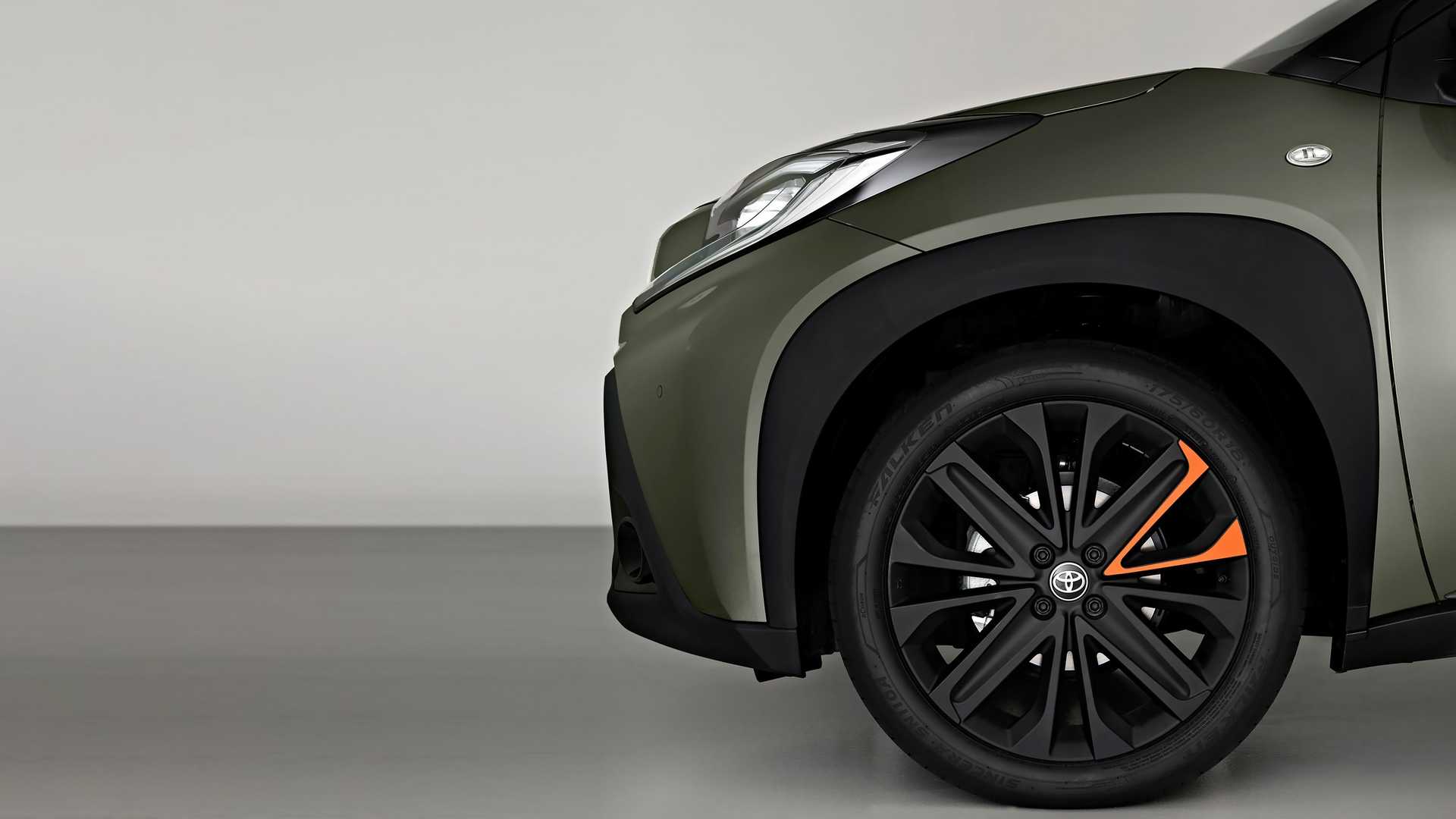 Se on nyt niin suuri, että Toyota katsoi sopivaksi asentaa siihen 18-tuumaiset mattamustat vanteet, joissa on oranssit (mandariinisiniset) yksityiskohdat. Aygo X perustuu GA-B-alustalevyyn ja tarjoaa edelleen sisäänvedettävän kangaskaton, joka säilyttää avoimen tunnelman. Merkittävästä koon kasvusta huolimatta kääntöympyrä on vain 4,7 metriä, mikä tekee siitä ihanteellisen ratkaisun vilkkaaseen kaupunkien viidakkoon kapeine ja vilkkaine katuineen.