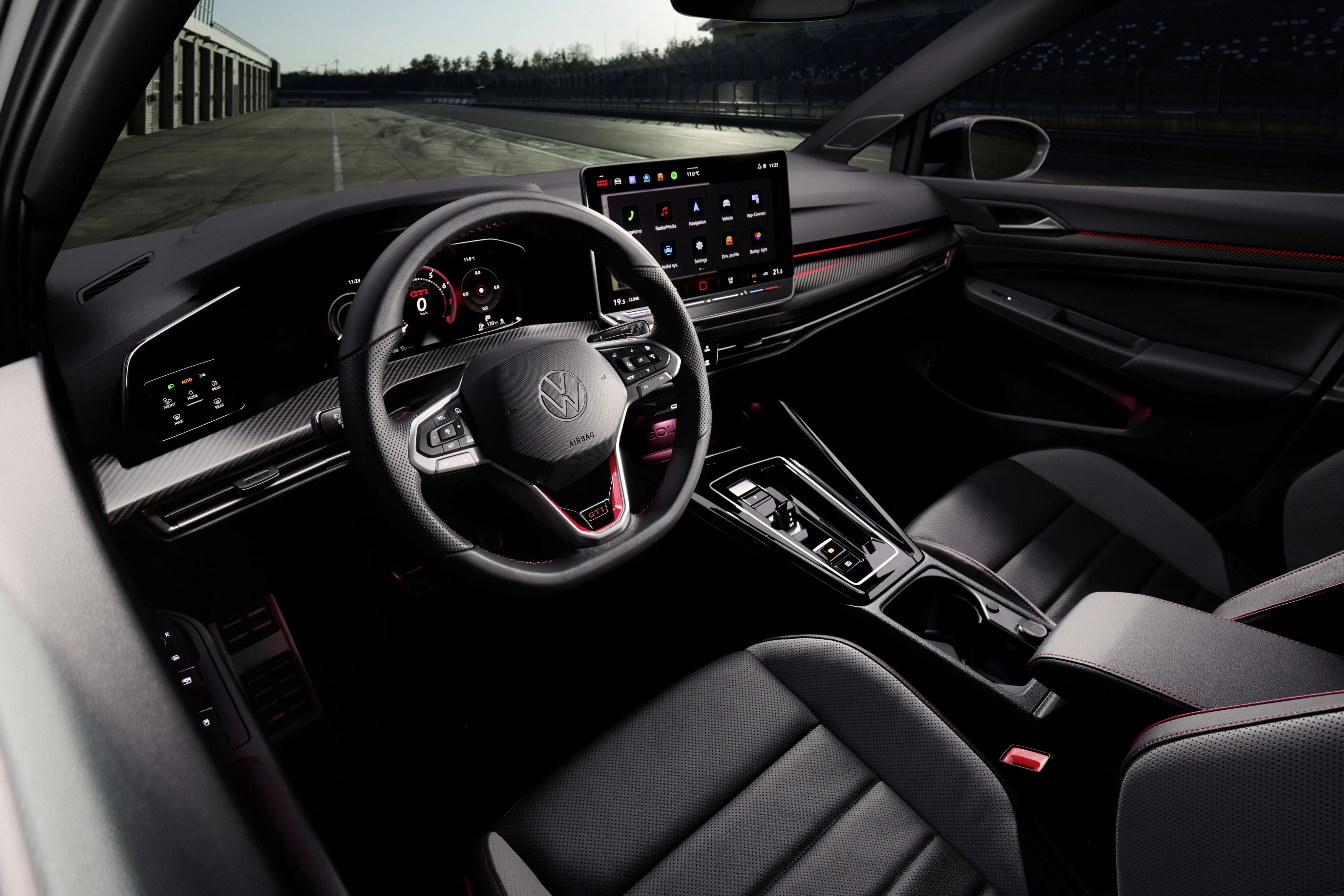 Uusi 19-tuumainen Queenstown-pyörät erottuvalla viiden soikean puoliympyrän muotoilullaan muistuttavat viidennen sukupolven klassisia Detroit-vanteita Golf GTI. Vielä vaativammille käyttäjille on saatavilla myös uusi 19 tuuman versio Warmenau taotut vanteet, jotka painavat vain kahdeksan kiloa vannetta kohden, mikä vähentää omapainoa ja optimoi suorituskykyä. Kuljettaja tekee vaikutuksen äskettäin kehitetystä, nahkaisesta monitoiminnallisesta urheiluohjauspyörän verhoilusta ja intuitiivisesta infotainment-järjestelmästä, joka mahdollistaa paremman keskittymisen ajamiseen. Huippumalli GTI sisältää myös uuden IDA-ääniavustajan ChatGPT-integraation kanssa.