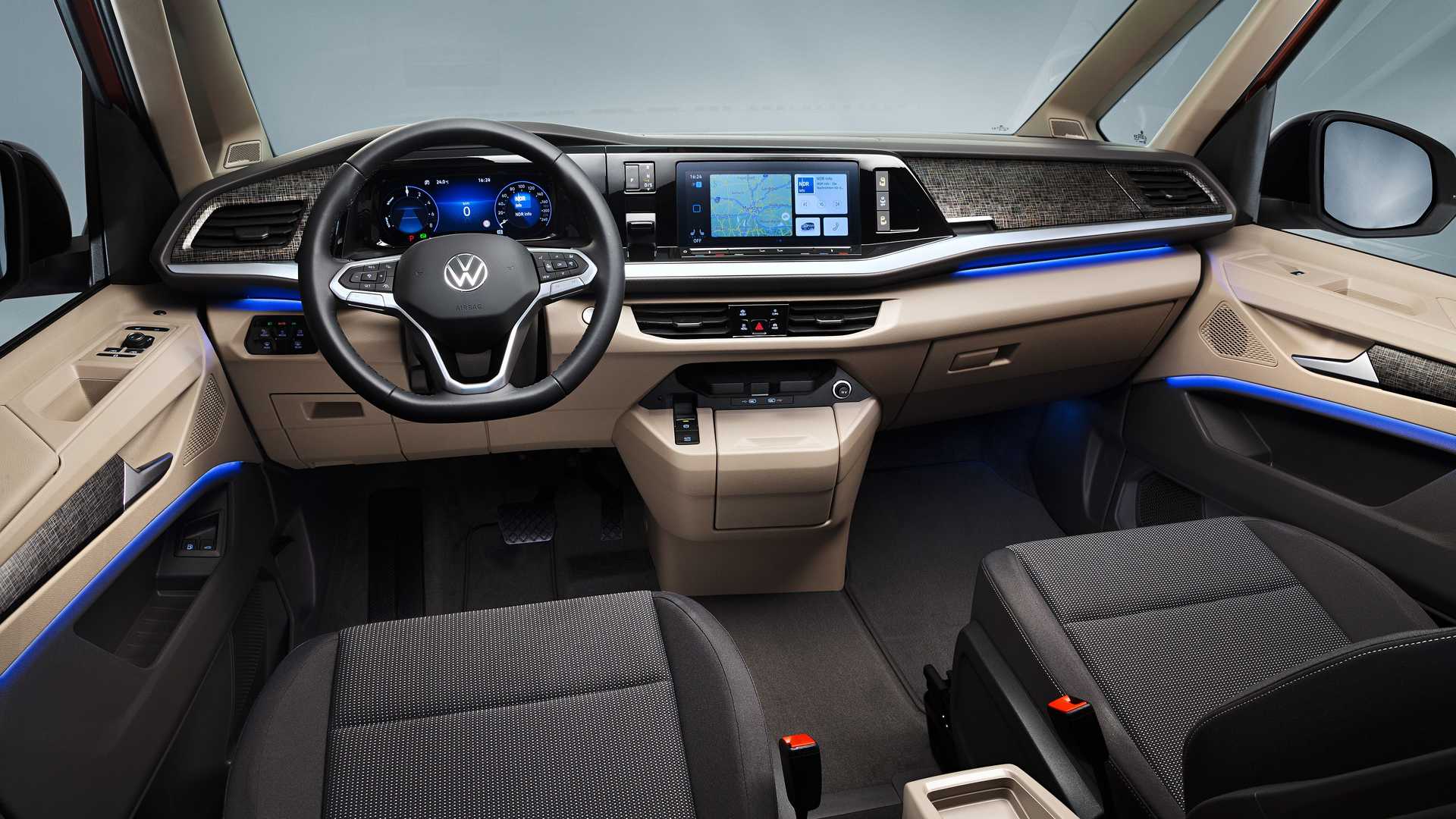 Matkustajat ovat tyytyväisiä lisävarusteena saatavaan lasikattoon, ja etuosa on uudistettu digitaalinen peruskorjaukset kuljettaja ja matkustamo. Digitaaliset mittarit kooltaan 10,25 tuumaa pitää silti seuraa 10-tuumainen näyttö infotainment-järjestelmän tarpeisiin. Se on myös saatavilla projektiivinen näyttö, joka on ensimmäistä kertaa Volkswagenin hyötyajoneuvoissa. Äänen ystäville on tarjolla Harman Kardon -äänijärjestelmä, s 14 kaiutinta ja yleinen vahvuus 840 wattia. Se huolehtii suuremmasta turvallisuudesta tiellä 34 erilaisia järjestelmiä ja avustajia.