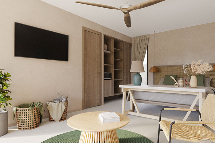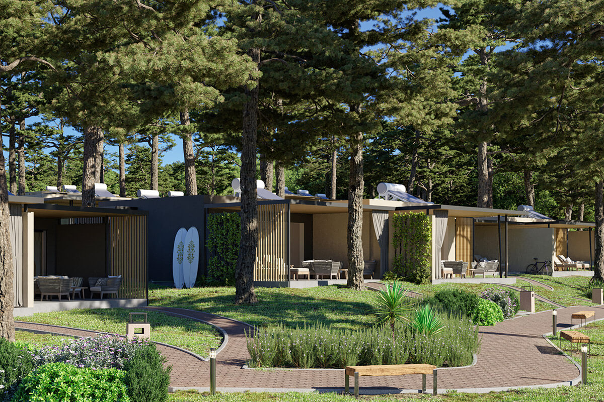 Lomakeskuksessa on tarjolla huviloita ja sviittejä. Kaikissa niissä on kauniit terassit, joiden avulla asiakkaat voivat olla läheisessä yhteydessä luontoon ja ympäristöön. Voit valita huviloista, joissa on terassi ja poreallas, perhesviittejä ja perhehuviloita. Lomakeskus on suunniteltu lapsiystävälliseksi, joten pienimmät voivat myös nauttia vesipuistosta, jossa on kolme uima-allasta ja monia liukumäkiä ja nähtävyyksiä. Heidän käytettävissään on myös ekologisia leikki- ja leikkikenttiä sekä lukuisia urheilumahdollisuuksia. Myös karvaiset lemmikkieläimet ovat tervetulleita ja saavat saapuessaan välipalan, lelun ja kulhon.