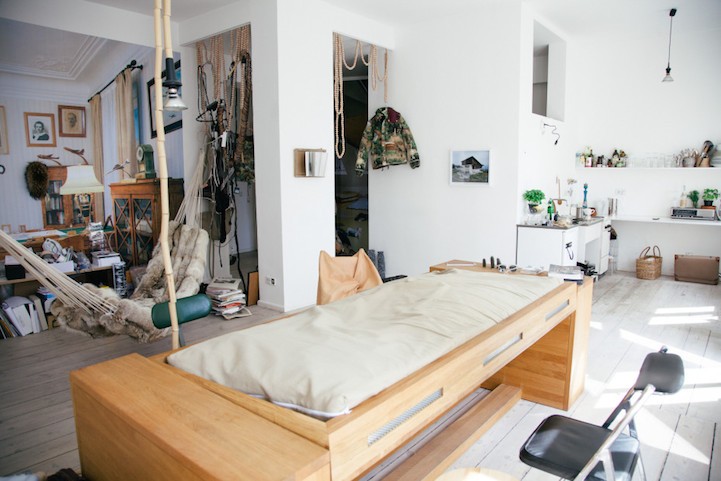 Druga priročna rešitev je zrasla na zeljniku oblikovalke Mire Schröder. Oblikovala je leseno posteljo, ki se čez dan spremeni v veliko leseno mizo. S pritiskom na gumb z lahkoto prevračamo mizo v posteljo in obratno. Čudovito preprosta rešitev.