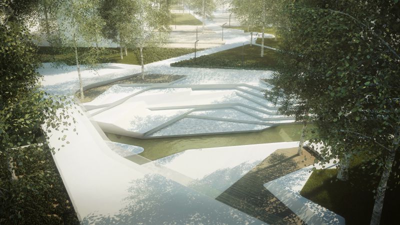 Uusi silta on hieman sivussa mutkaisen polun suuntaisesti ja on hyvin kapea verrattuna vanhaan. Siten se jättää pääroolin vesielementille, joka on enemmän läsnä tyylikkäästä sillasta. Sillan ympärillä on porrastettu laskeutuminen veteen molemmin puolin, jolloin vierailijat voivat kokea joen läheltä. Tämä on ensimmäinen paikka Velenje, joka hyödyntää Pakajoen vesielementtiä, joka muuten on poistunut kaupungin tapahtumista ja upotettu jokiuomaansa. Veteen johtavat valkoiset portaat muodostavat eräänlaisen amfiteatterin, joka on tarkoitettu tapahtumien järjestämiseen kaupungin keskustassa ja seurustelemiseen nuorten kanssa.