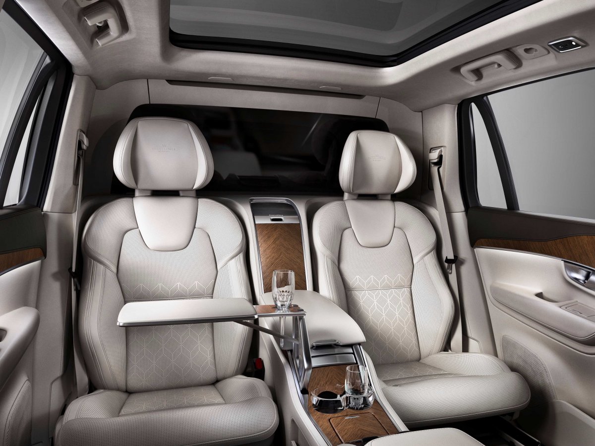 Čeprav boste Volvo XC90 Excellence na zunaj težko ločili od njegovih manj prestižnih sorodnikov, pa je notranjost čisto drug svet. Prostor za potnike namreč spominja na luksuzno kabino privatnega letala, ki mu švedski proizvajalec pravi kar ”skandinavsko svetišče”. In kaj to svetišče premore? Ambientalno osvetlitev, prekucljiv in na dotik občutljivi zaslon, zložljive servirne podstavke, hladilnik za steklenice, nosilce za kozarce, ogrevan in hlajen nosilec za steklenico, kot smetano na vrh torte pa še ročno izdelane kristalne kozarce Orrefors. K zračenim masažnim sedežem, ki so zamenjali standardno zadnjo klop terenca se to edino spodobi.