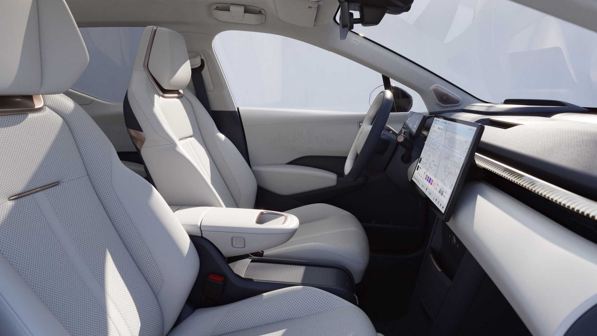 Tämän kiinalaisen sähköajoneuvon sisustus on ilo silmille. Venytetty kojelauta, jossa on koko leveyden kattava näyttö ja keskellä oleva kosketusnäyttö, josta löydät kaikki sovellukset ja asetukset. Yläpuolellasi on sähkökrominen lasikatto, jonka voit vaihtaa läpinäkyvän ja läpinäkymättömän välillä.