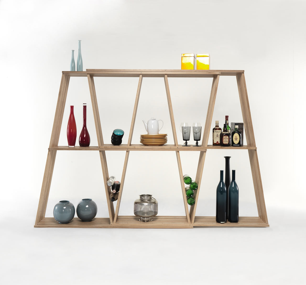 Suunnittelija Laurindo Marta yrityksestä WeWood je oblikoval polico, ki stavi na 100-odstotni masivni hrast. Material, ki je potreben, da mnogi elementi, vezani skupaj z gibljivimi elementi, lahko delujejo kot mehanizem, ki omogoča preoblikovanje Kirjahyllyt v več oblik. Modularna zasnova, ki jo lahko povečuje tako višino kot širino, je narejena iz dveh blokov. Vsakega od teh blokov tvori 48 lesenih letev, ki delujejo v tandemu z medeninastimi vijaki oziroma veznimi elementi. Slednji omogočajo gibanje v drugo konfiguracijo.
