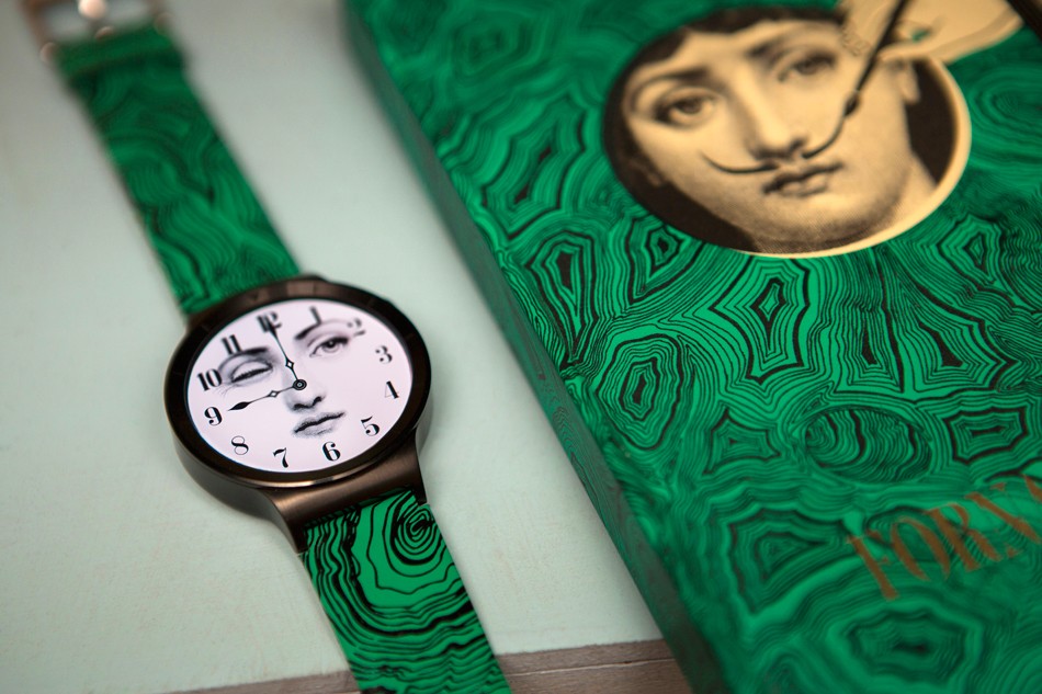 Tako kot pametne ure s svojimi zasloni na dotik uporabniku ponujajo neštete ”variacije”, je sloviti oblikovalec pohištva in predmetov Barnaba Fornasetti nekaj podobnega naredil z obrazom operne pevke Line Cavalieri (izdelal je več kot 500 popolnoma različnih variacij in tem). Ti brezčasni motivi so zdaj končali tudi na številčnici omejene serije pametnih ur Huawei. Posebnega tretmaja ”oblikovalca sanj” sta bila deležna tudi pašček in škatla za shranjevanje, oba z vzorcem malahita, tega zelenega poldragega kamna s temnimi žilami, ki je prav tako zaščitni znak kultnega oblikovalca. Enako velja za motiv ključavnice. Ura je bila žal rezervirana samo za izbrance in mednje razdeljena ob koncu Tedna mode v Milanu.