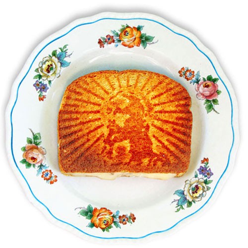Fromage, toast avec du fromage sur lequel est cuite l'image de Jésus. Pourquoi quelqu’un voudrait une image sur quelque chose qui sera mâché en quelques minutes me dépasse. Il est encore plus incompréhensible pourquoi ils recevraient une telle idée jusqu'à 25 000 dollars.