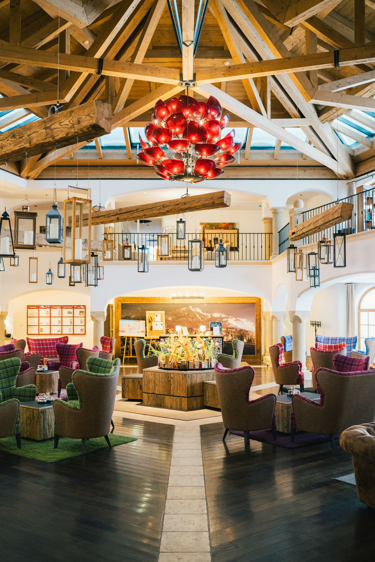 Charmant Hôtel A-ROSA, qui surplombe les magnifiques sommets des Alpes environnantes, est un bon exemple de la relation harmonieuse entre modernité et tradition. Le logement, construit dans le style d'un château tyrolien, est situé sur une immense propriété, juste à côté du lac, et en face se trouve un magnifique green avec des terrains de golf. Celles-ci sont blanchies par la neige en hiver, et la vue sur l'architecture exceptionnelle de l'hôtel est alors encore plus magnifique.