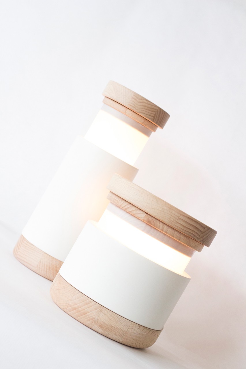 Abre Lamp predstavlja sodobno oblikovanje, ki sta ga navdihnili tradicionalni lesna in lončarska obrt. Svetilka je narejena iz naravnih materialov in uporabniku dopušča, da z dvigovanjem in spuščanjem zgornjega dela poljubno zamegli žarnico ter ustvari popolno ambientalno svetlobo, primerno za vsak trenutek.