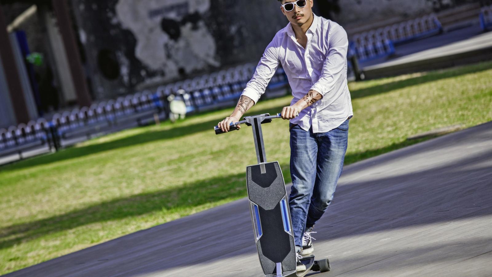 Toda to se ni vse! Električni longboard Audi je v bistvu biser inženirstva, saj ga lahko uporabljate na različne načine. Lahko se vozi kot običajna rolka ali pa iz njega “potegnete” krmilo in tako postane neke vrste električni skuter. Poleg tega ga lahko uporabljate tudi kot nekakšen tovorni voziček in z njim prevažate tovor. Pri tem pa vam ga ne bo treba upravljati, saj bo samostojno sledil vaši pametni uri ali telefonu.