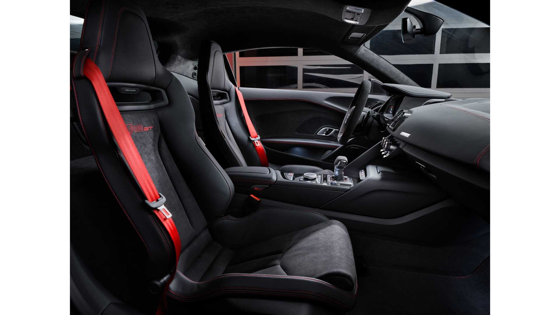 Pour faciliter l'identification entre les différents modèles R8, l'édition limitée porte le logo Audi et l'inscription R8 GT en noir. L'ensemble aérodynamique, qui est fait de fibre de carbone et fini en soufflerie, a également été affiné. L'intérieur est fini en noir avec des accents rouges, et chaque voiture aura un numéro d'édition limitée sur le levier de vitesses. Il ne sera disponible que 333 spécimens de la dernière R8 V10, toutes ne seront disponibles que dans la version Coupé, et chacune devra être déduite sur le marché allemand 225 000 euros.